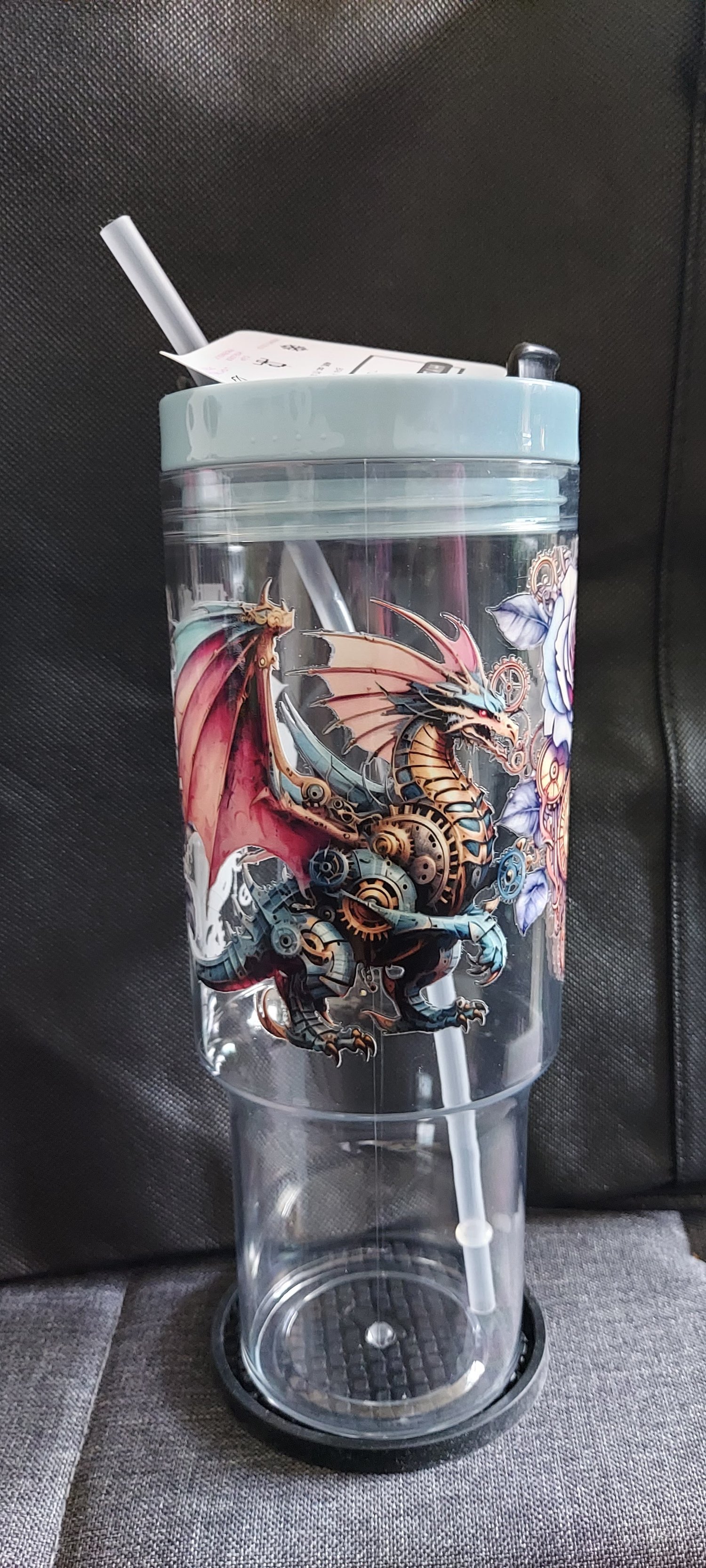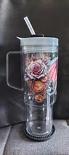 Clear Acrylic 40 oz tumbler with steam punk dragon