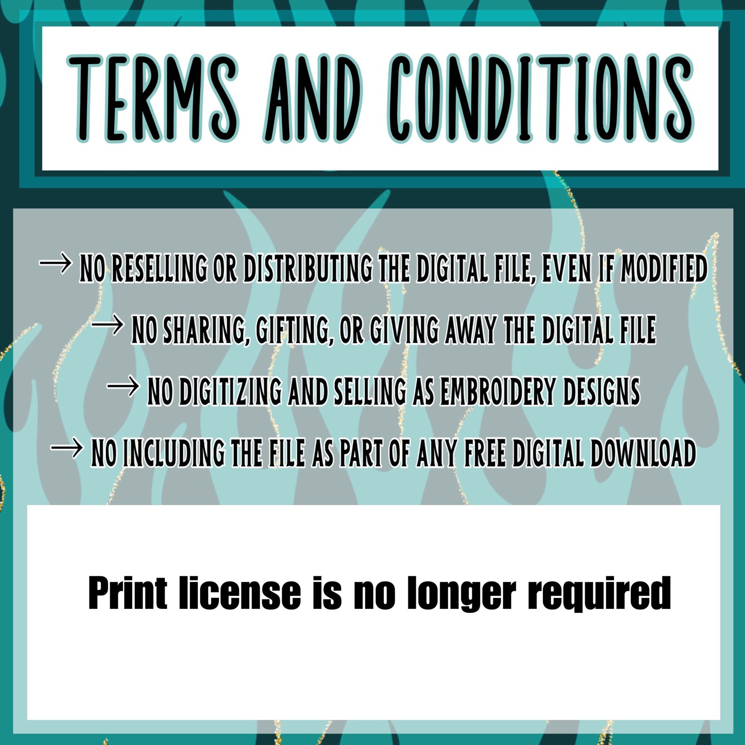 **NOT TO BE SOLD AS PRINTED TRANSFERS WITHOUT PURCHASING TRANSFER LICENSE**
