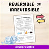 Reversible and Irreversible Changes Worksheets | Sorting Cut and Paste | Notes