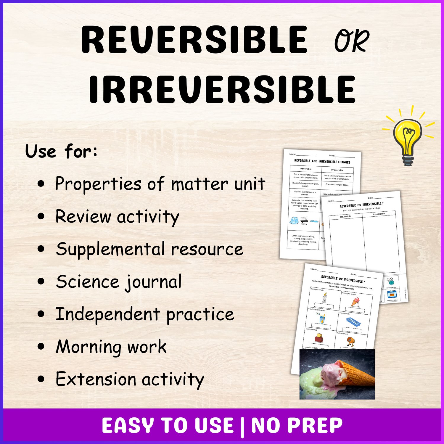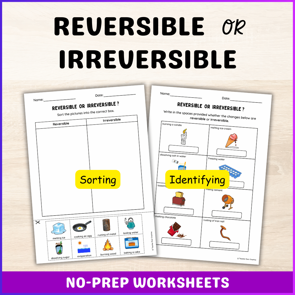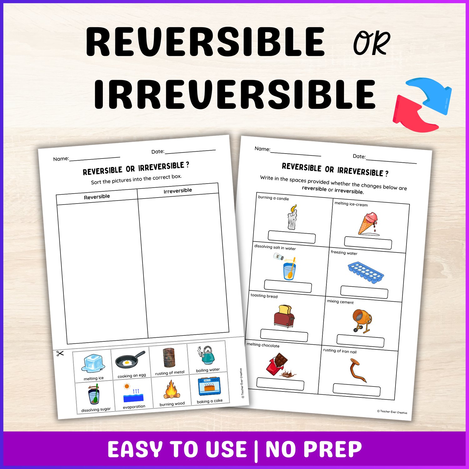 This Reversible and Irreversible Changes worksheets help students to define and differentiate between reversible and irreversible changes.