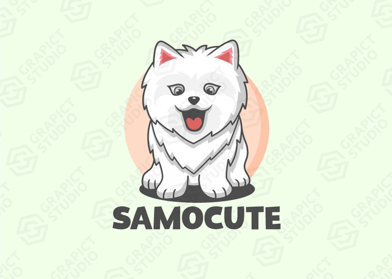 Cute Samoyed puppy mascot laughing related to happy dog expression