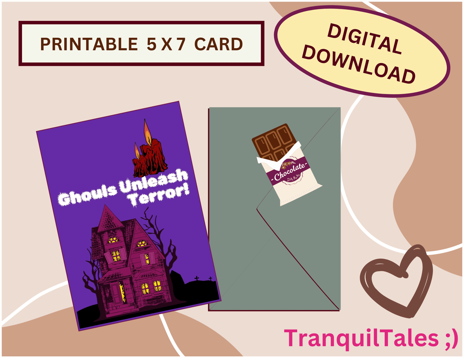 CARD TYPE – Halloween Card for Teenagers / Children - Ghouls house Unleash Terror