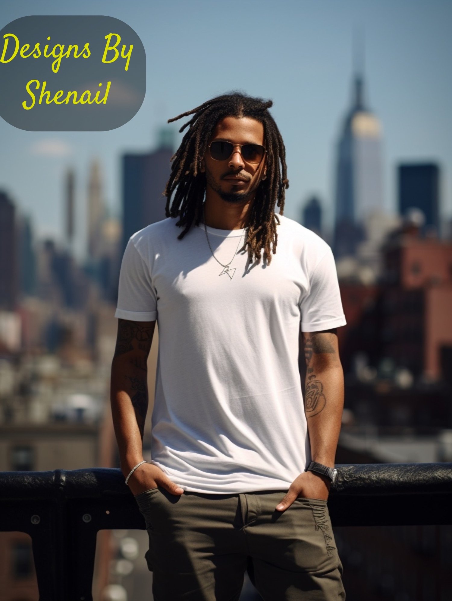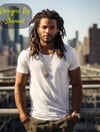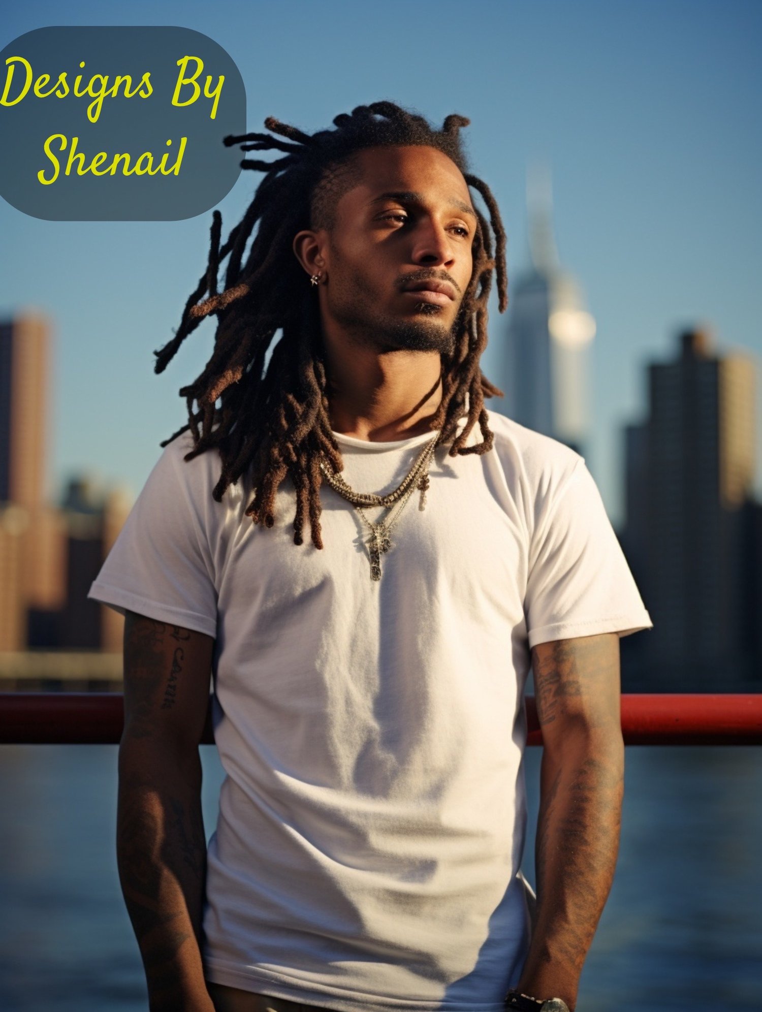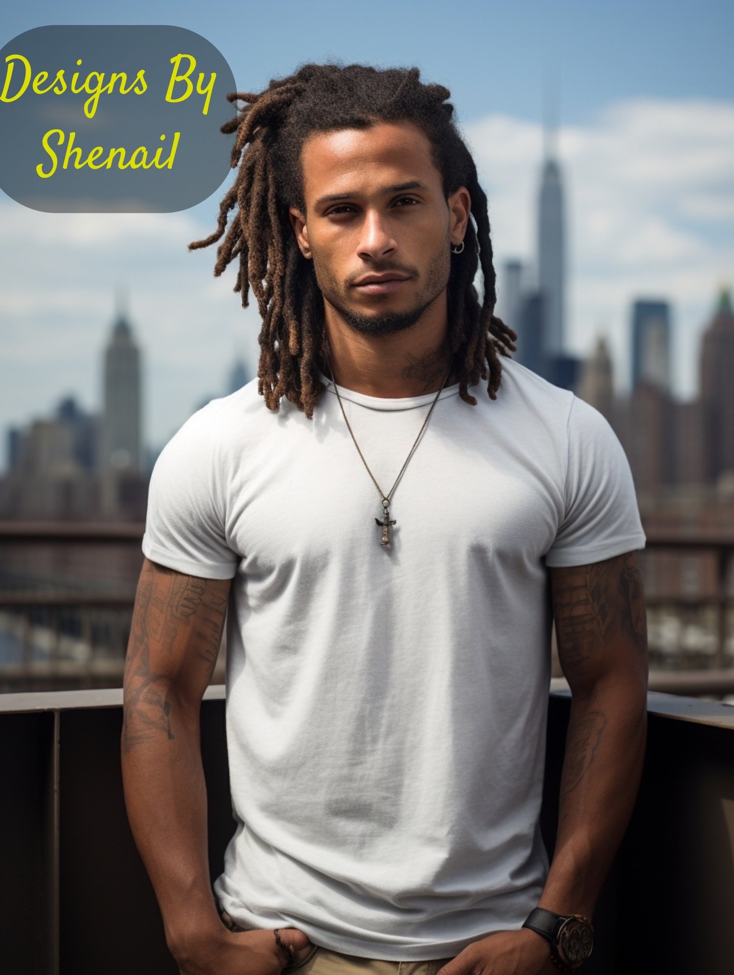 Looking to elevate your apparel presentations? This Urban King Bonus Mockup Pack is the perfect addition to your collection! Featuring five confident and stylish mockups of Black men with locs in urban rooftop and cityscape settings, these mockups bring bold realism and swag to your designs.