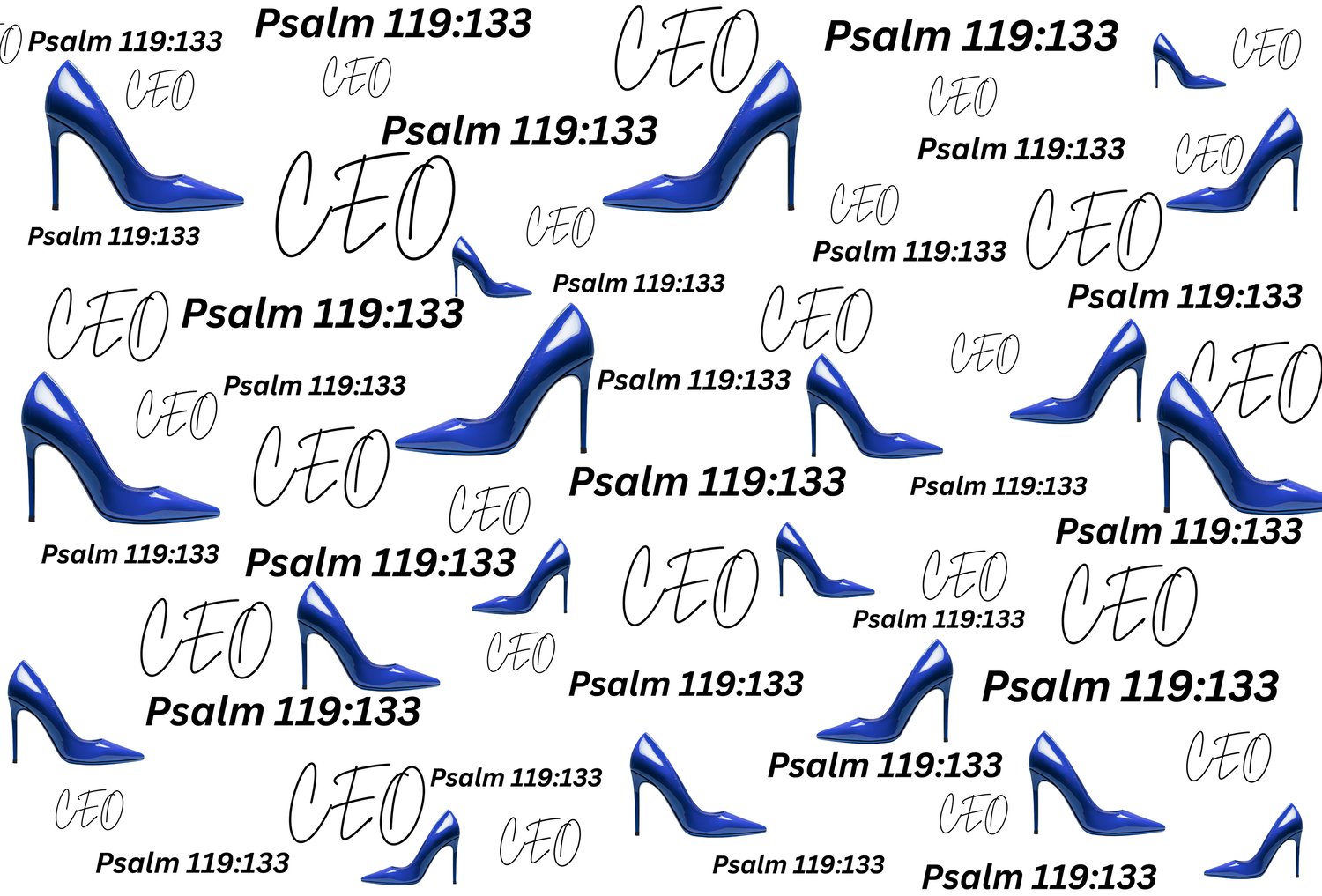 Inspired by Psalm 119:133 — “Order my steps in Your word; and let not any iniquity have dominion over me” — this stunning design is more than wrapping paper; it’s a prophetic statement. The blue high heel symbolizes wisdom, peace, and divine favor — perfect for the woman of God who leads with vision and grace.