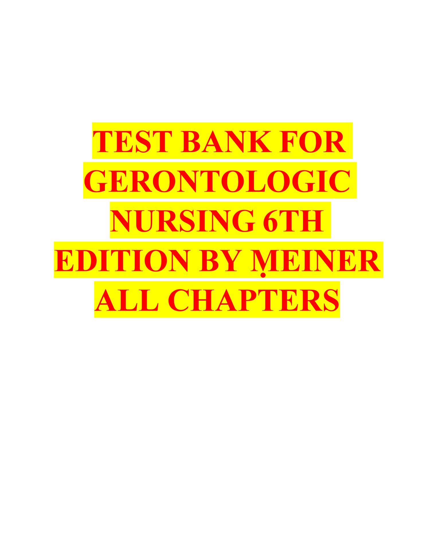Get the complete Test Bank for Gerontologic Nursing, 7th Edition by Jennifer J. Yeager, Mary B. Winton, and Sue E. Meiner. This resource provides comprehensive coverage of gerontologic nursing principles, clinical practice, and patient care strategies tailored for older adult populations.