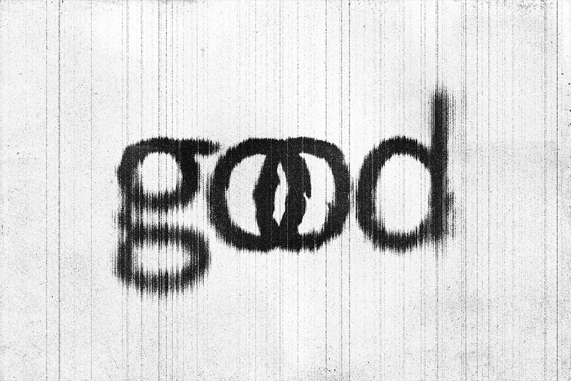 Feels grungy, analog, and deliberately messy, conveying a sense of decay, imperfection, or chaotic energy.