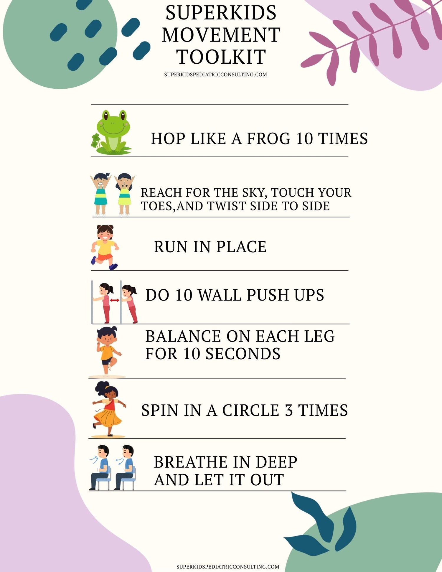 Perfect for parents, teachers, and therapists, these activities are easy to set up at home, in the classroom, or during therapy sessions. Download your free movement activities today and make movement an enjoyable part of every child’s routine!