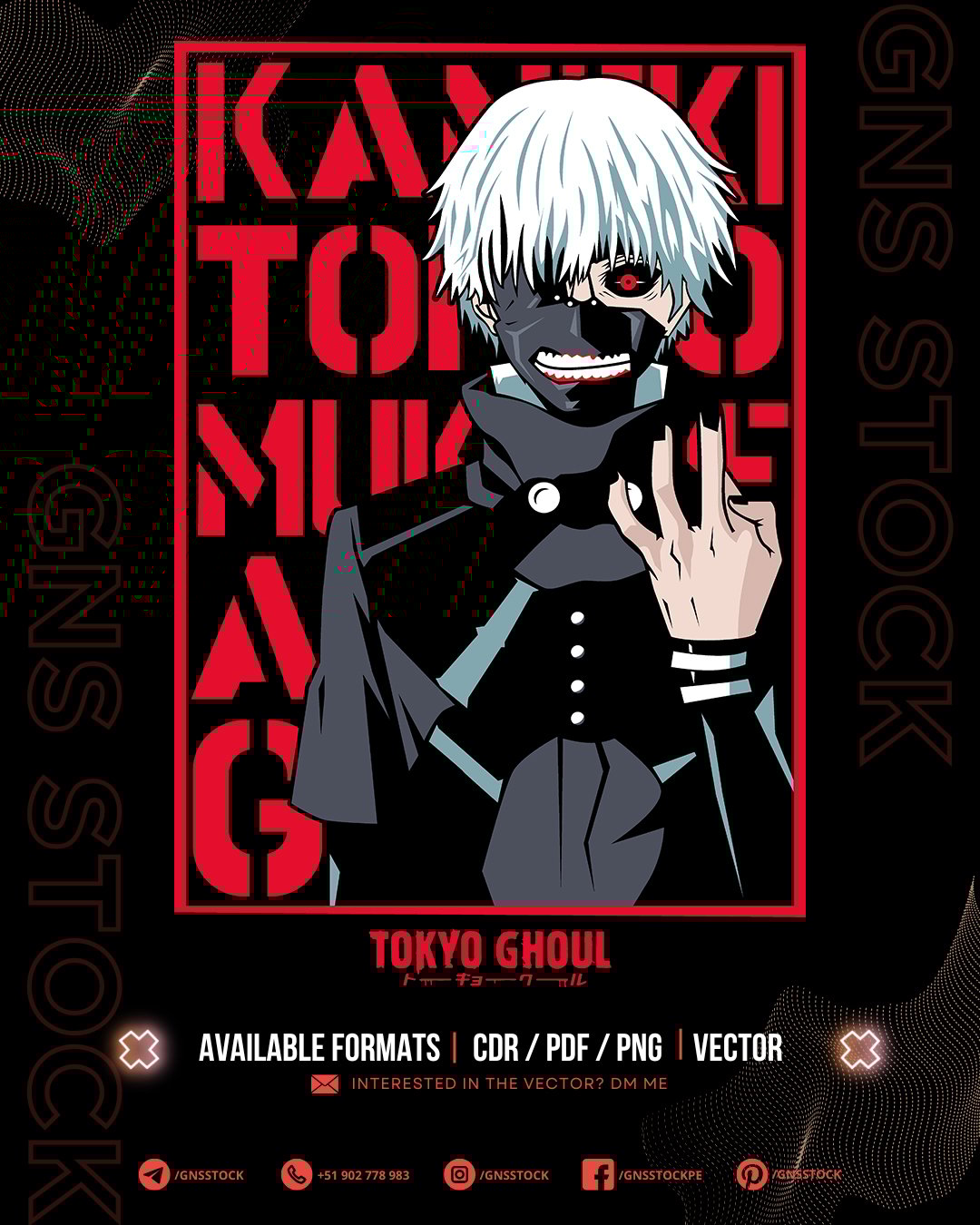 Vector anime Ken Kaneki – Tokyo Ghoul DTF, CDR, PDF, PNG