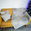 The blanket and cushion covers are knitted in blocks, in mosaic garter stitch. Mosaic knitting is an easy way to create striking colourwork. Mosaic knitting is perfect for beginners who are attempting colourwork for the first time. Just knit and slip stitches, one colour at time. There are ZERO purl stitches needed. Directions are given how to work mosaic from the chart. The pattern is fully charted.