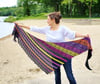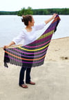 Wicked Tulips is an asymmetric triangular shawl consisting of garter and slipped stitches (i.e. mosaic pattern) finished with a simple lace pattern that is only worked on the right side rows. Only one color is worked per row for the mosaic pattern.