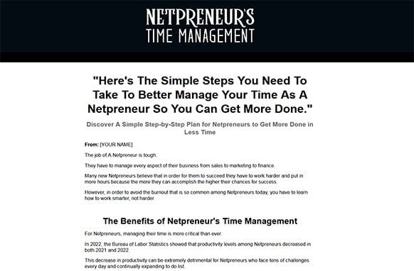Here's The Simple Steps You Need To Take To Better Manage Your Time As A Netpreneur So You Can Get More Done. Discover A Simple Step-by-Step Plan for Netpreneurs to Get More Done in Less Time. The job of A Netpreneur is tough.