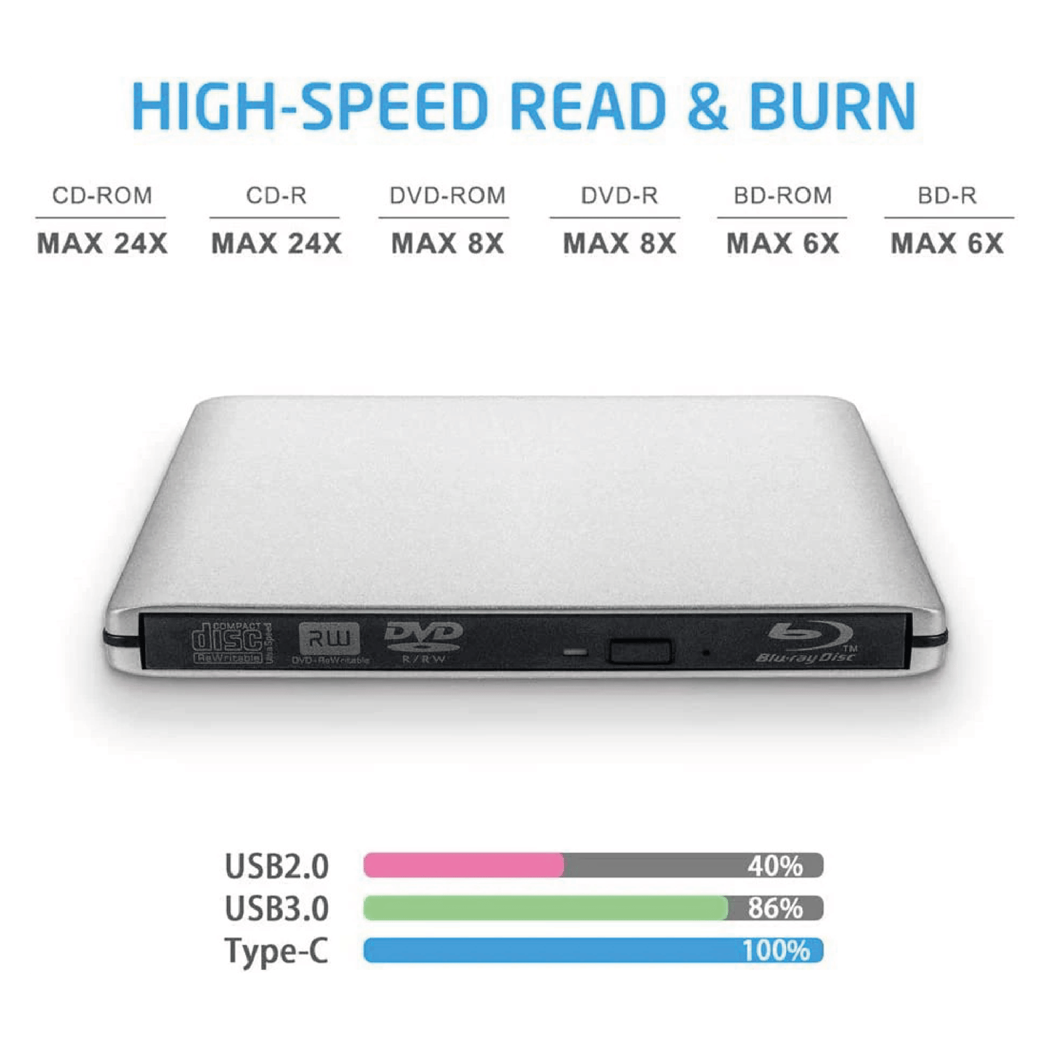 Graveur Blu-Ray UHD 4K USB 3.0 externe lecteur DVD BD-RE compat. Windows/Mac
