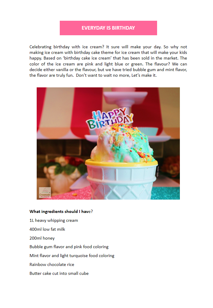 and this e-book takes you on the journey to travel the world through ice cream flavors which are unique and authentic from different parts of the world such as South East Asia, East Asia, Middle East, Europe, Latin America and few other places. Some of the ice cream flavors not available at your convenient stores and some are not even couldn't be found in your country.