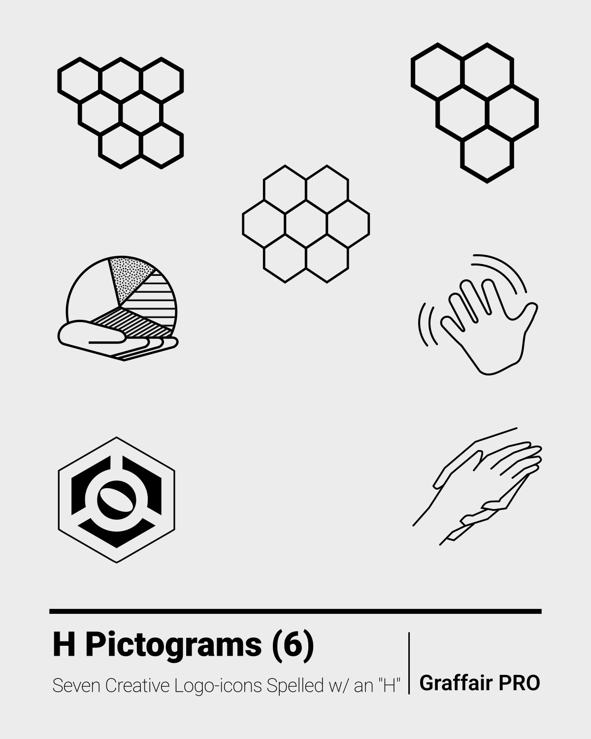 H Pictograms (6): The 6th set of 7 pictograms, each beginning with an "H".