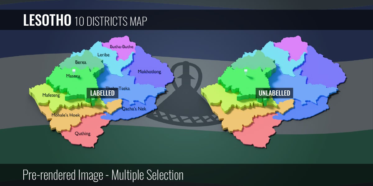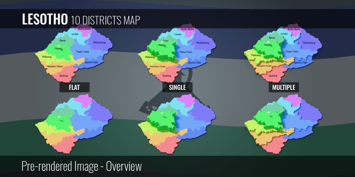 Lesotho - 10 Districts Map (3D + Pre-rendered Images)