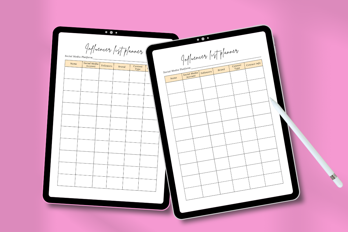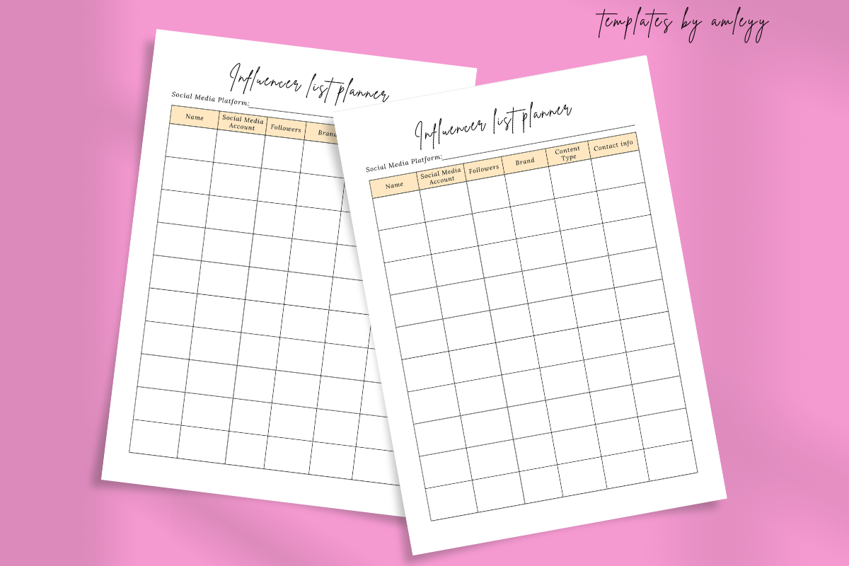 Influencer List Planner Template – Editable Canva Influencer Outreach Tracker | Content Creator Collaboration Organizer | PR & Marketing Planner Printable