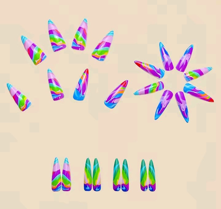 24 pieces of Long Almond shaped nails for new spring and summer. These wearable false nails offer a simple, stylish, and modern look, perfect for everyday wear or special occasions.