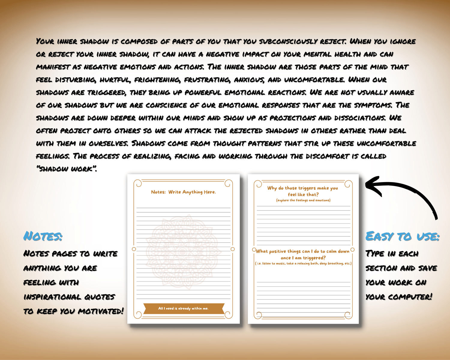 Shadow Free in 2023 is a guided Shadow Work digital journal with fillable fields!