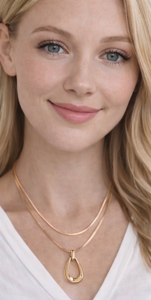 Gold Layered Teardrop Pendant Necklace – Double Snake Chain Minimalist Necklace – Elegant Gold Statement Jewelry