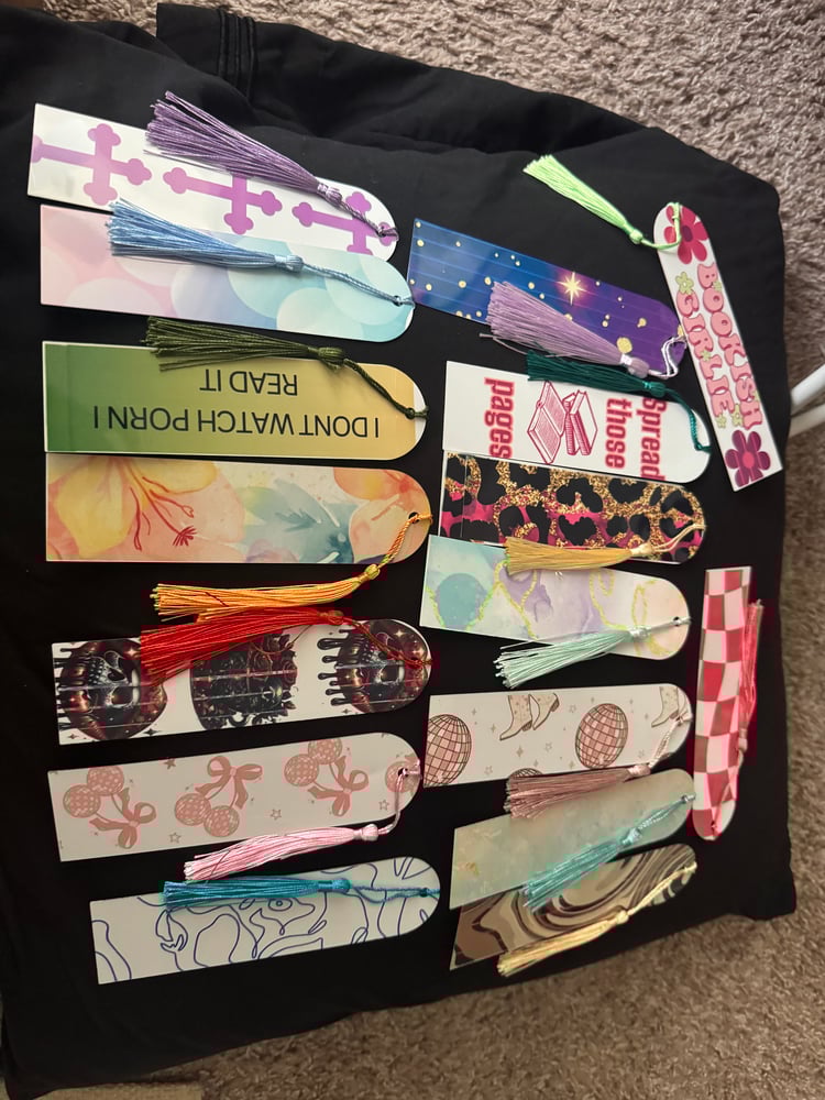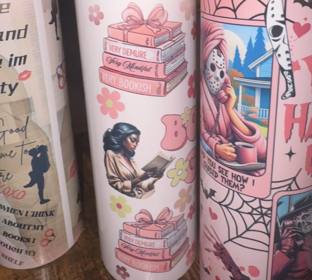 This bookish girly 20-oz tumbler has the same design as the bookish girly blanket, so they can be bought together to match.