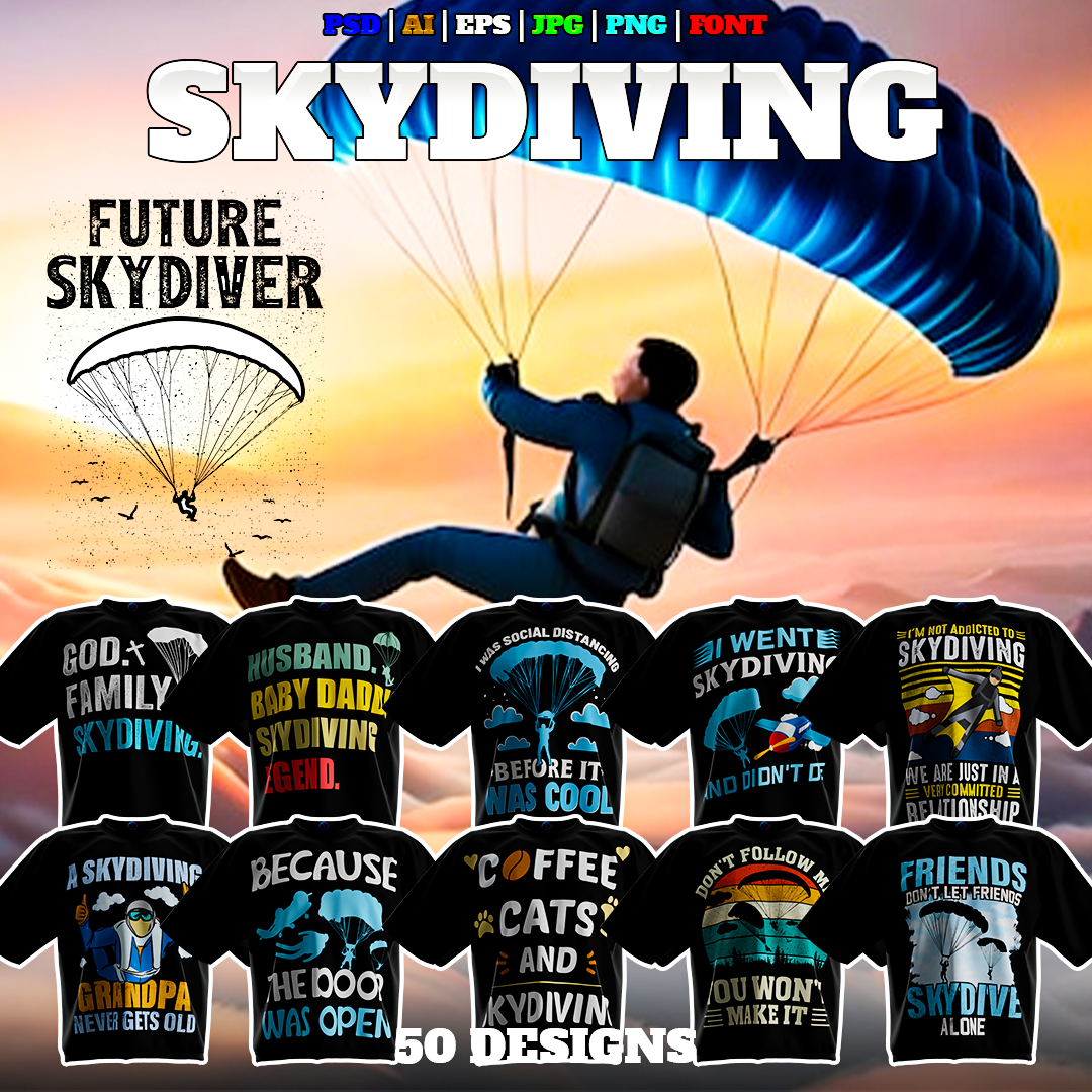 48 Premium Editable Skydiving Theme T-Shirt