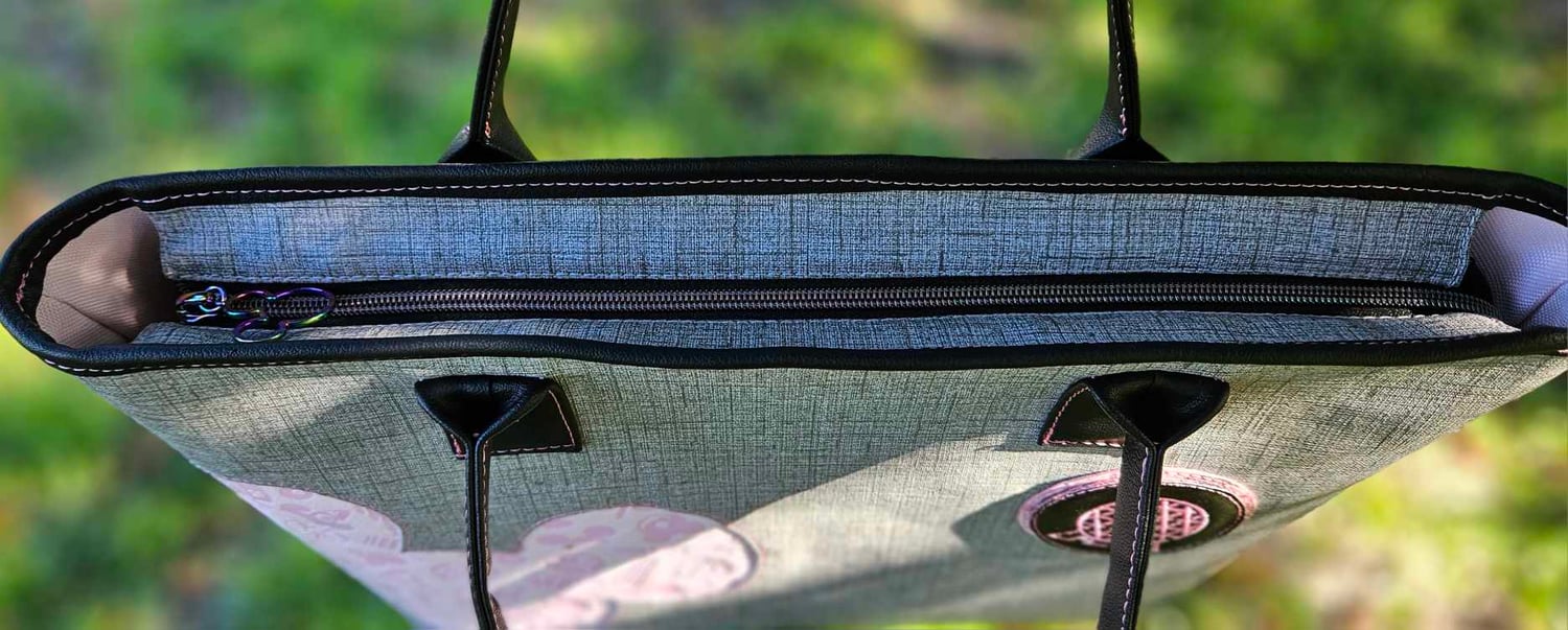 This add-on pack includes the dimensions and measurements necessary for incorporating a zipper at the top of the bag, as well as for creating an internal zippered pocket.