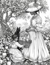 - Beautifully detailed images of Victorian ladies strolling among falling leaves, etc.