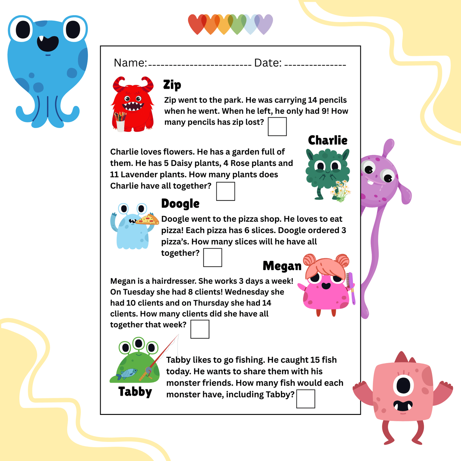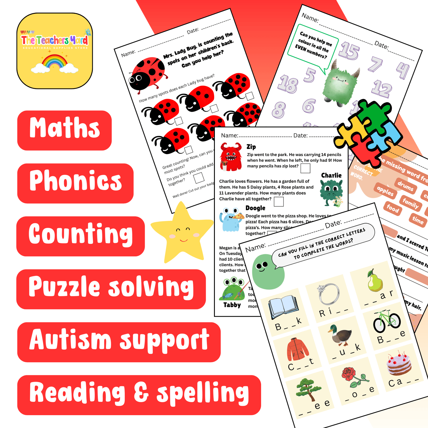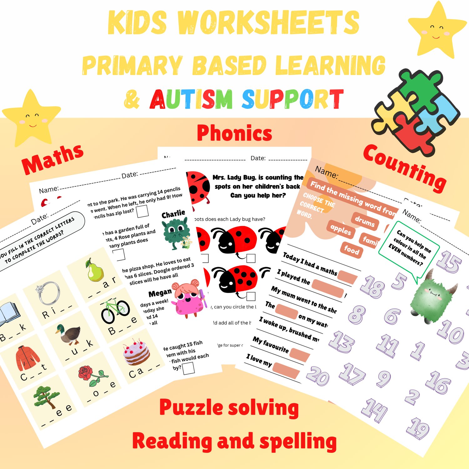 Kids work sheets | Monster maths | primary based learning | kindergarten | autism support | maths | phonics | digital downloads