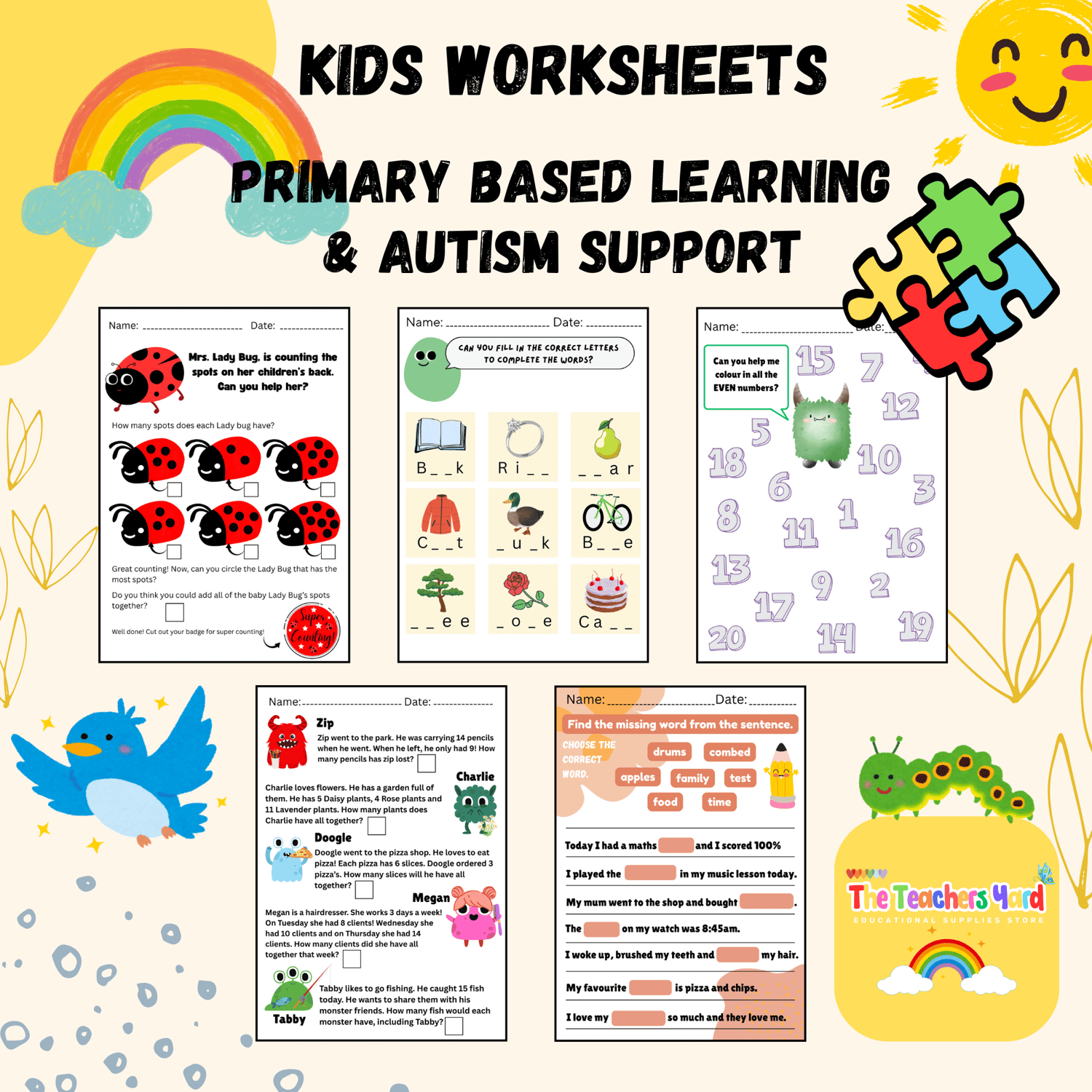 Personalise your child's learning, with this wonderful pack of 5 primary based learning and Autism support worksheets. Great for Kindergarten and primary school age.