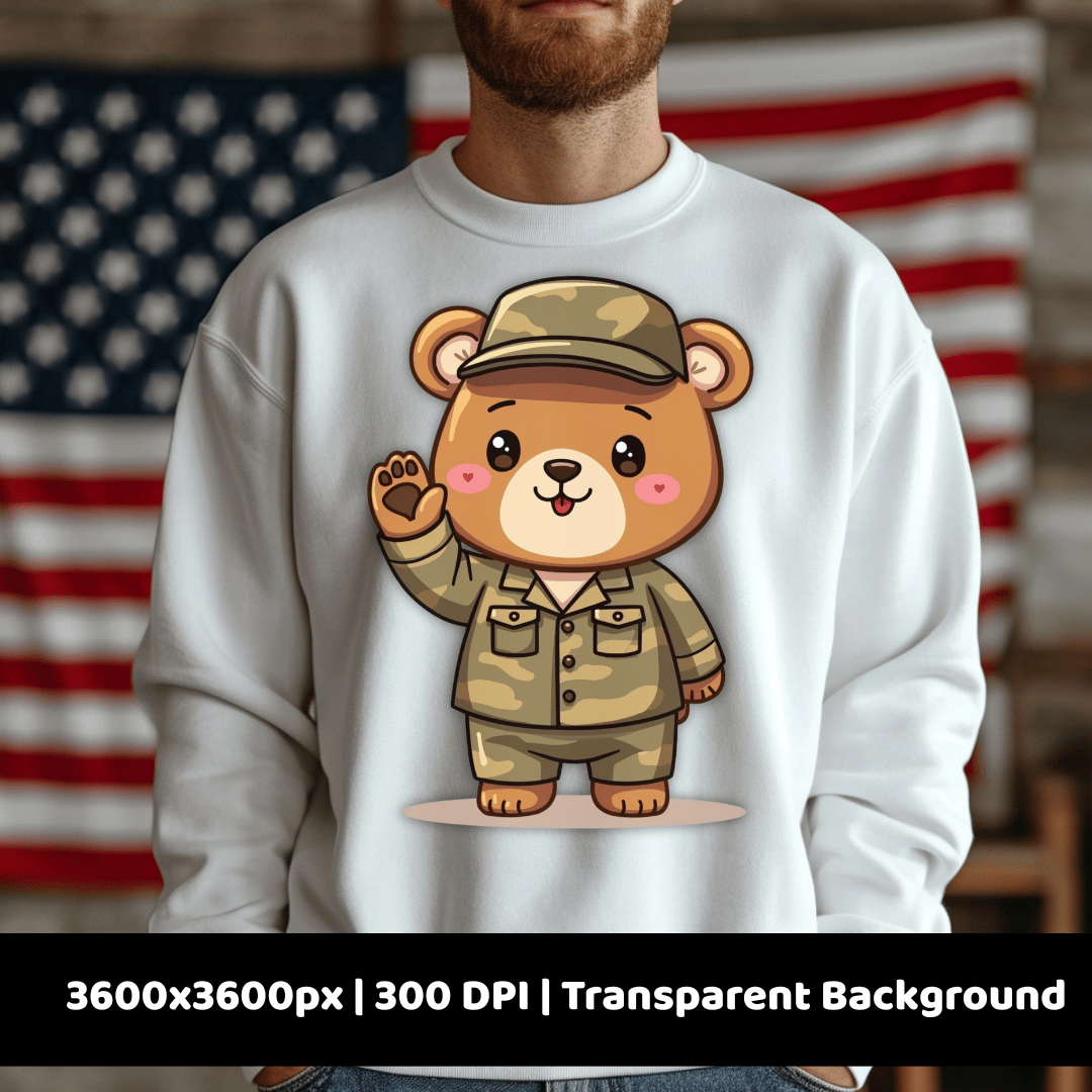 Military Bear PNG | Veterans Day Clipart | Cute Patriotic Animal Sublimation Design for Crafts & DIY