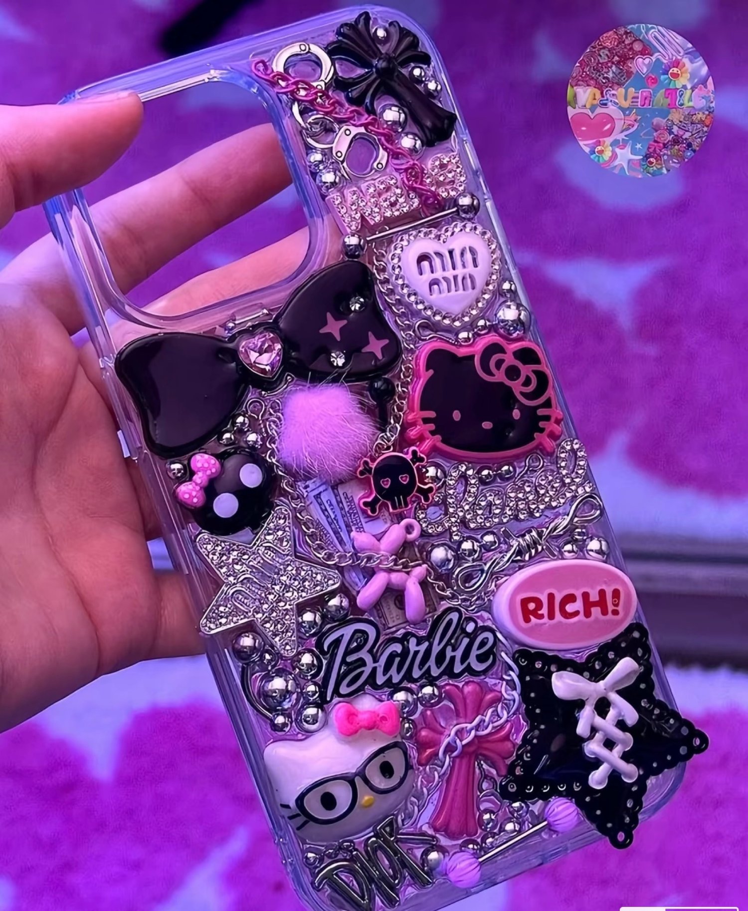 Get ready to turn your phone into a full-on fashion statement! This custom Hello Kitty iPhone case is hand-decorated with shimmering rhinestones, giving your favorite Sanrio character the glam treatment she deserves. It’s cute, bold, and extra in all the right ways.