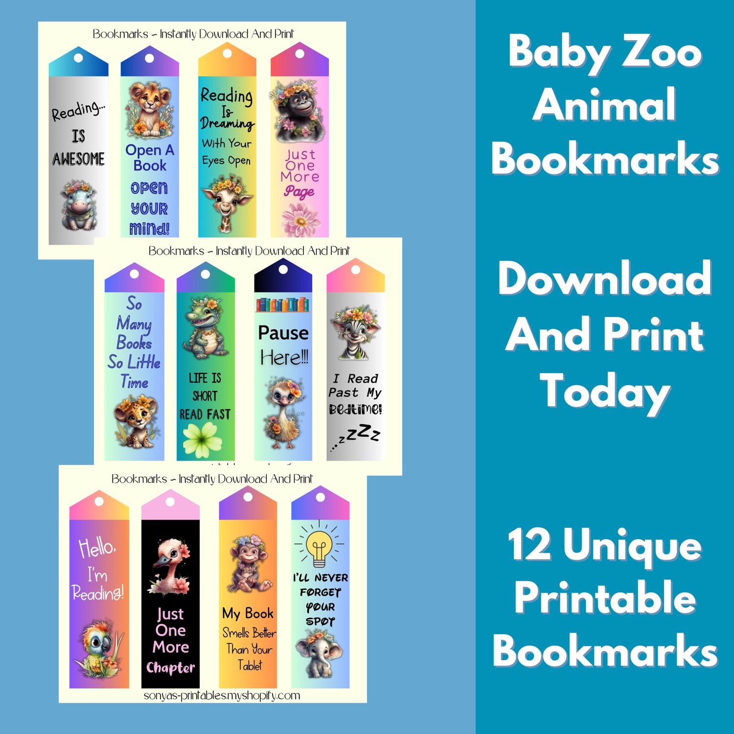 12 Printable Baby Zoo Animal Bookmarks | Unique Baby Animal Page Holders | Printable Zoo Animal Bookmarks | Gift For Readers