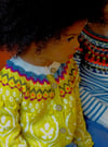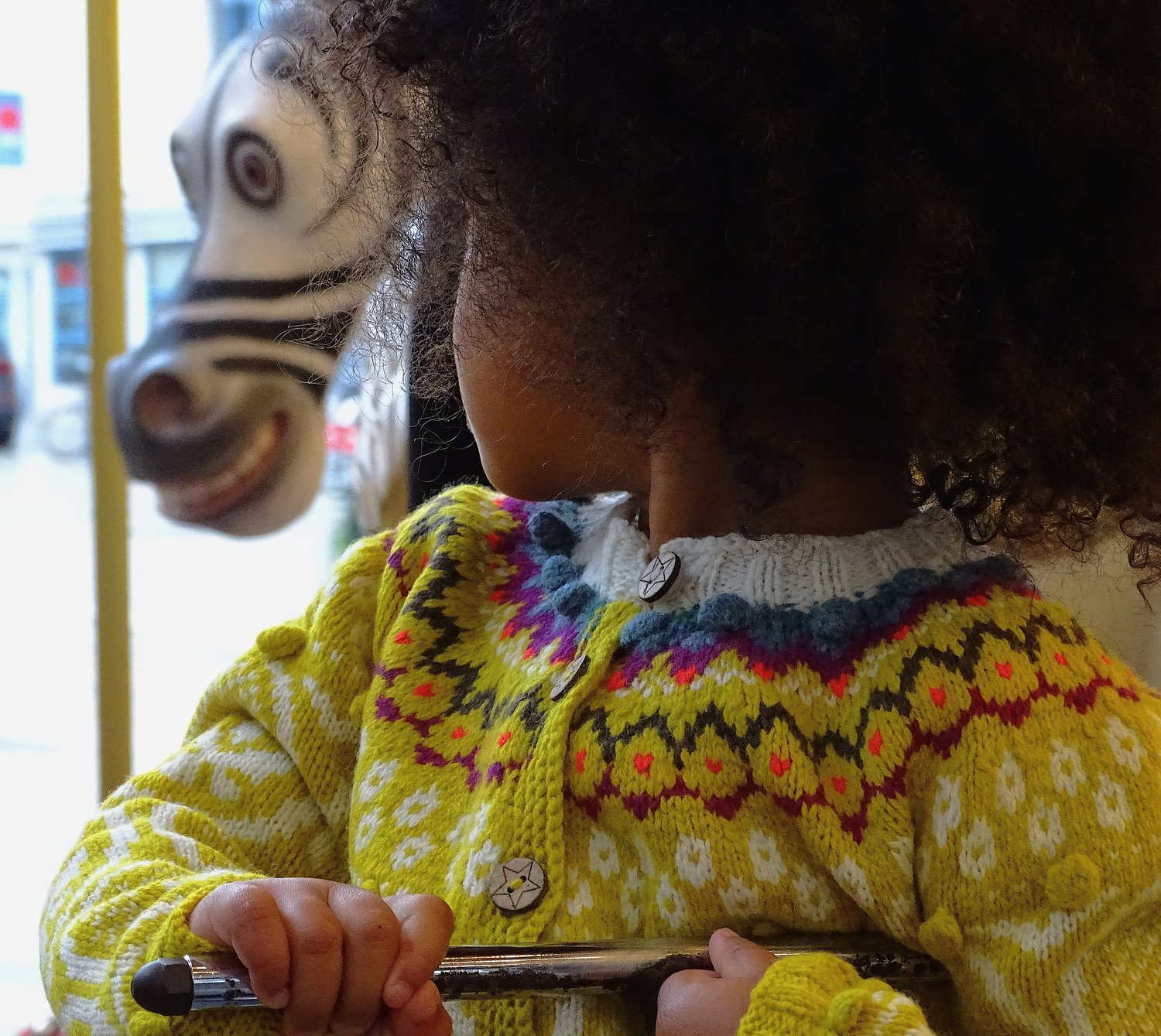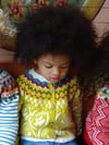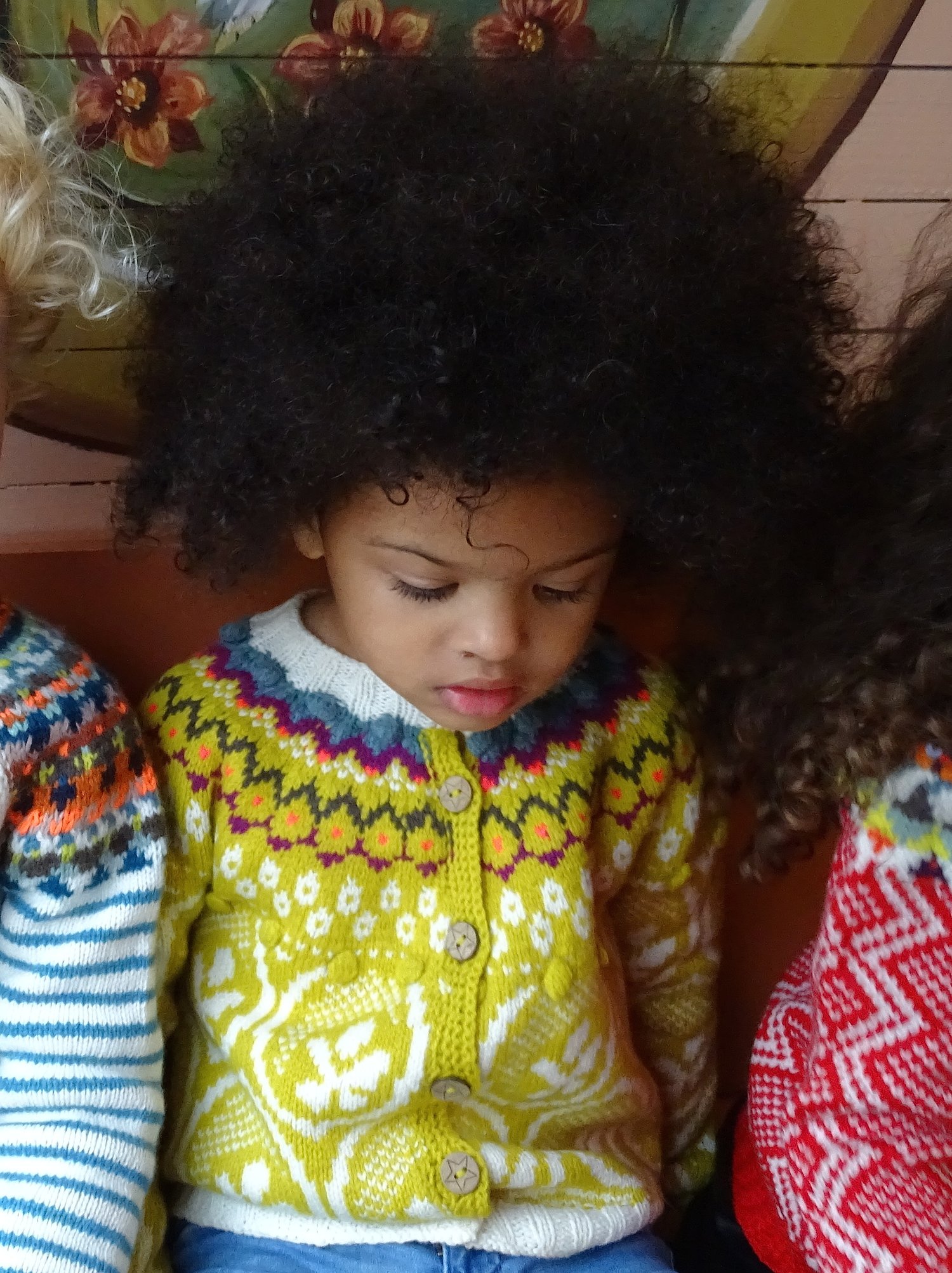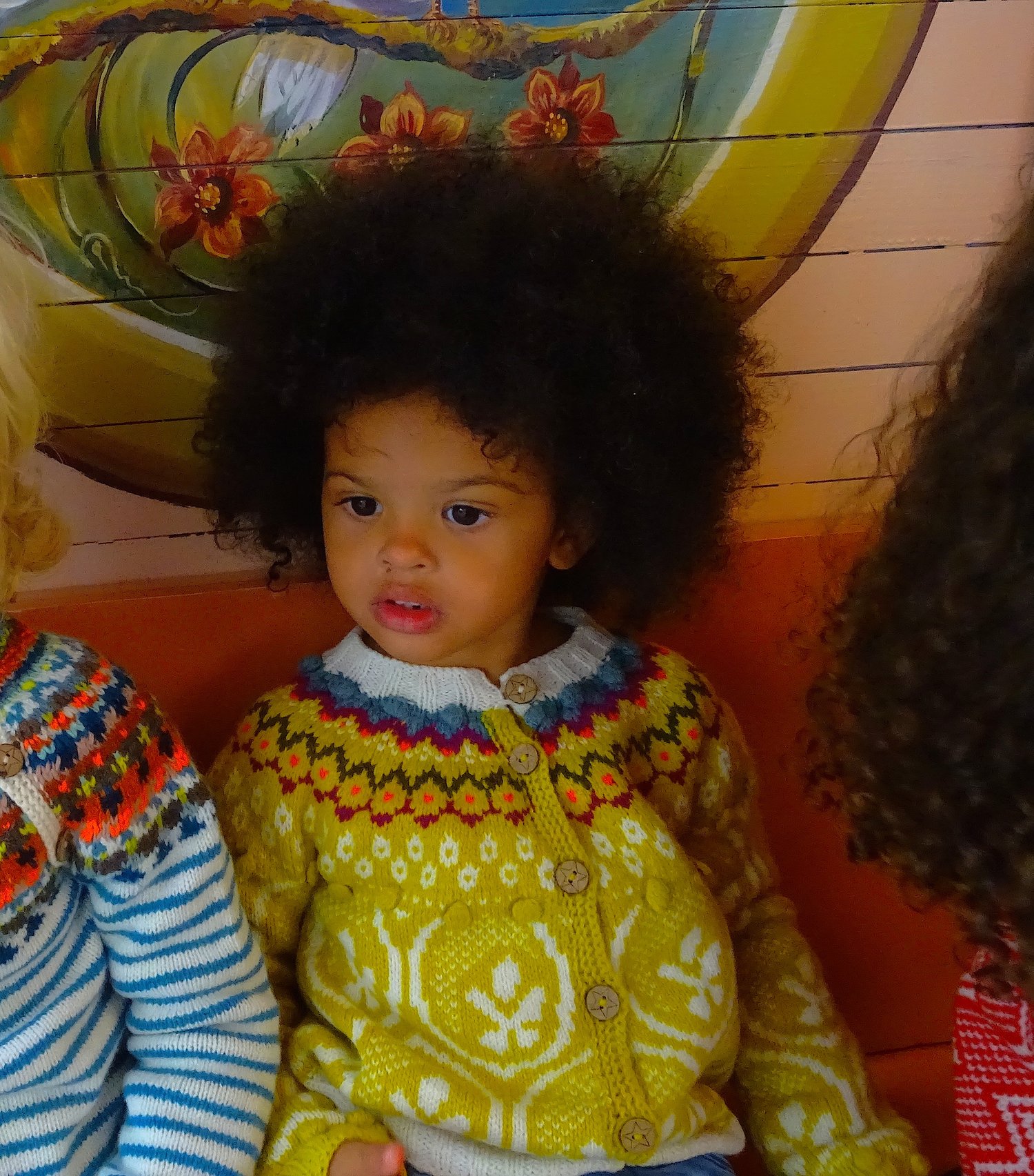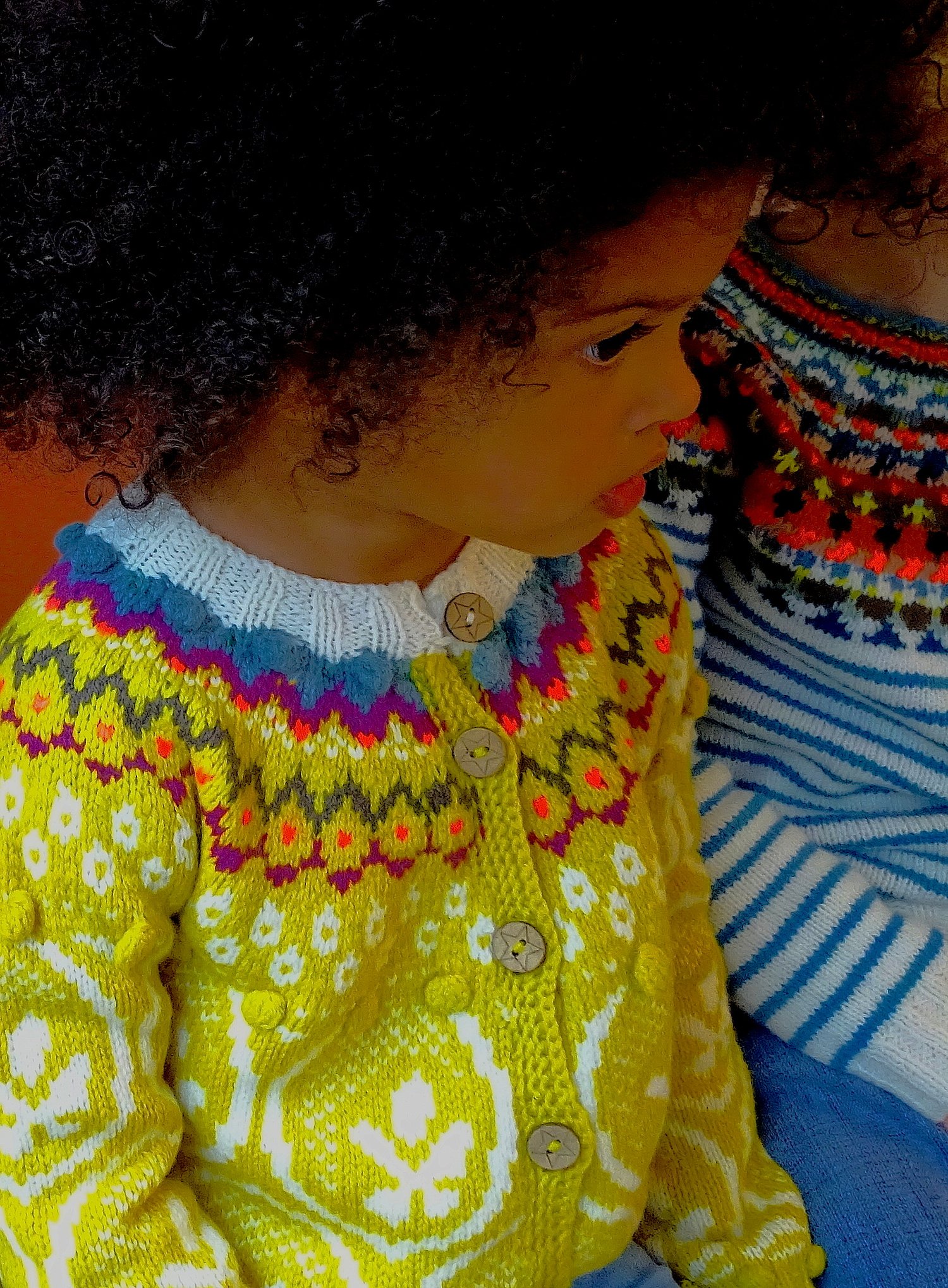 This cardigan has been designed in 6 different sizes. The ages I have suggested are approximate only and depend on the fit you want so please look closely at the schematic for actual sweater measurements. In the front-page photo, Mawa, three years old, is wearing the size 3-5 years, Clément (pictured in the hammack) is five and a half years old and wearing the same size, but with less positive ease. For Clément, the body and sleeves have also been lengthened. Choose your size according to the fit you want and lengthen/shorten the body and sleeves as you need. The 12+ size is designed to also be able to be worn by a small adult, with a close fit.