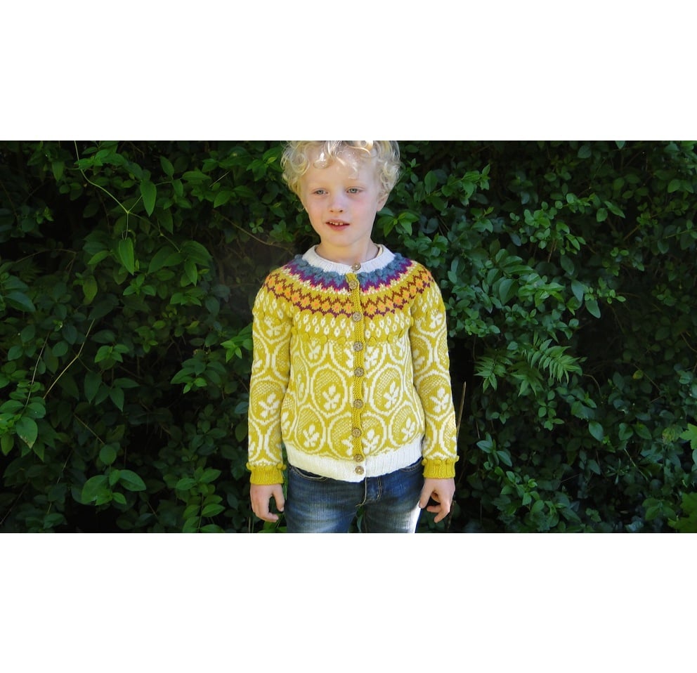 Instructions to knit your own Quince cardigan in sizes 1Y, 2Y, 3-5Y, 6-8Y, 9-11Y and 12Y.