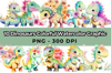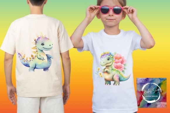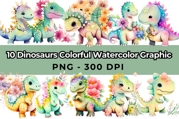 10 Dinosaurs Colorful Watercolor Graphic in PNG files in size: 5000 x 5000 pixels in 300 DPI with transparent background.