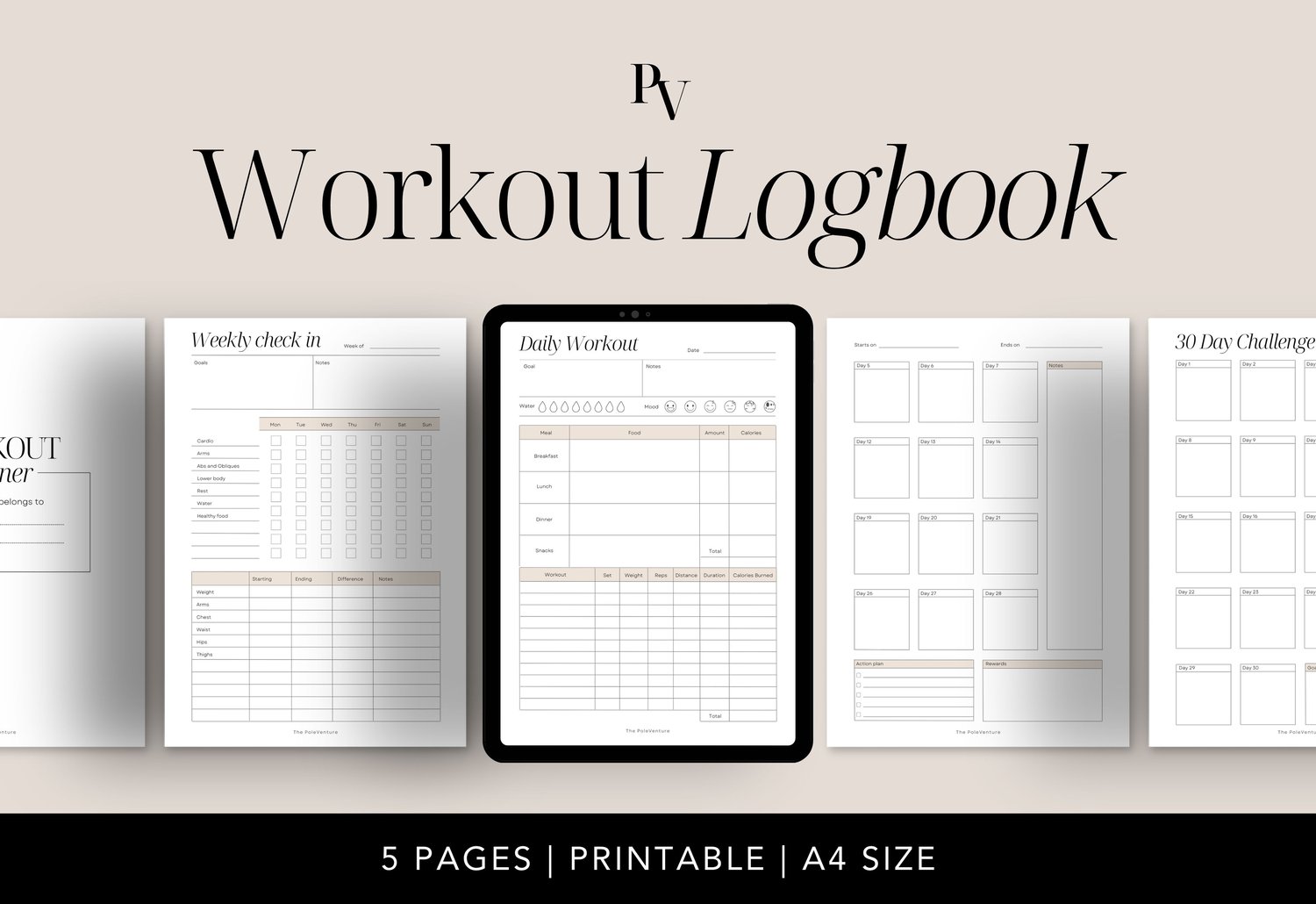 Our 5-page printable workout logbook is the perfect companion for tracking your fitness journey!