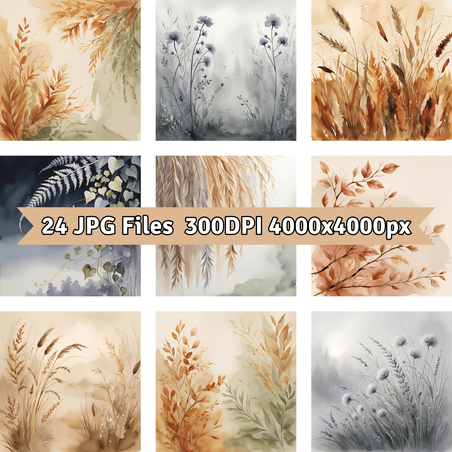 Botanical Watercolor Backdrops - Set of 24 Illustrations
