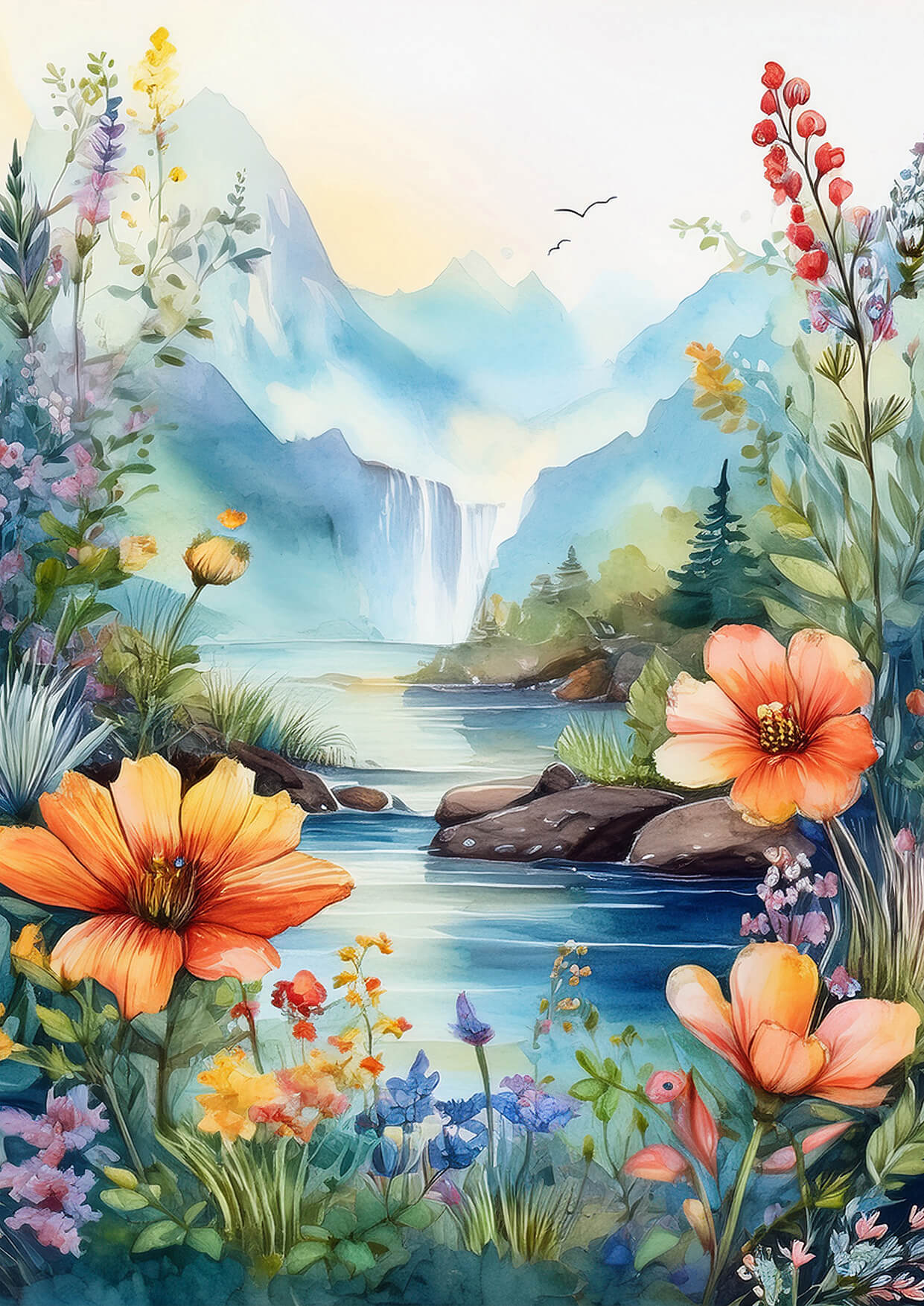 Images of majestic mountains and sparkling water flowing will infuse your space with energy that supports professional success, symbolizing goal setting, focus, and progress.