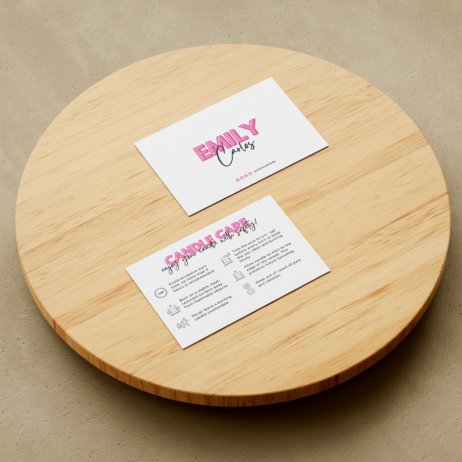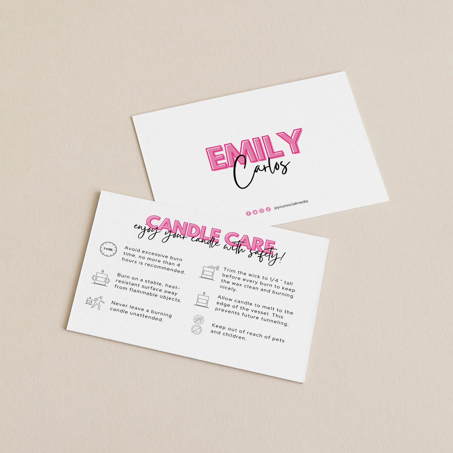 Pink editable candle care template | 148 X 105 mm