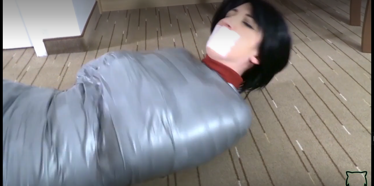 Video includes: Duct tapegag, stuffgag, rope bound, chairtie, boots, pantyhosefeet, on screen gagging, boots removed, mummification, teasing, forced feet smelling, feet tickling, sock tapegag, struggling, moaning, gagtalk