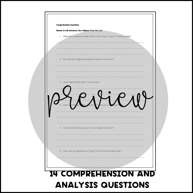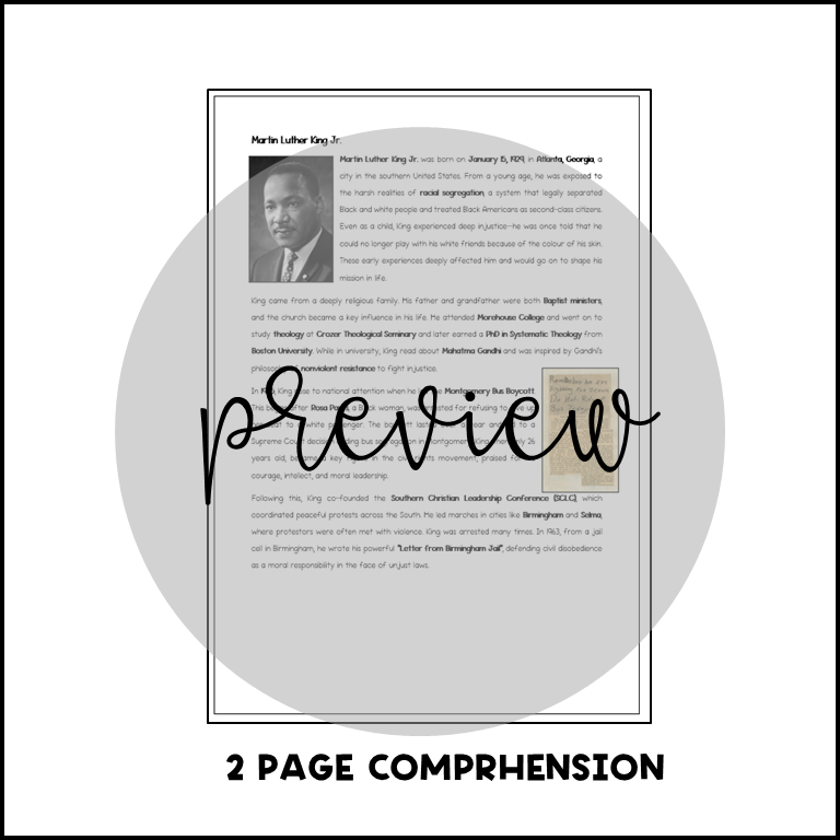 Looking for an engaging and meaningful non-fiction reading resource? This Martin Luther King Jr. comprehension pack provides an in-depth look at the life and legacy of one of the most influential leaders of the American Civil Rights Movement. βπ