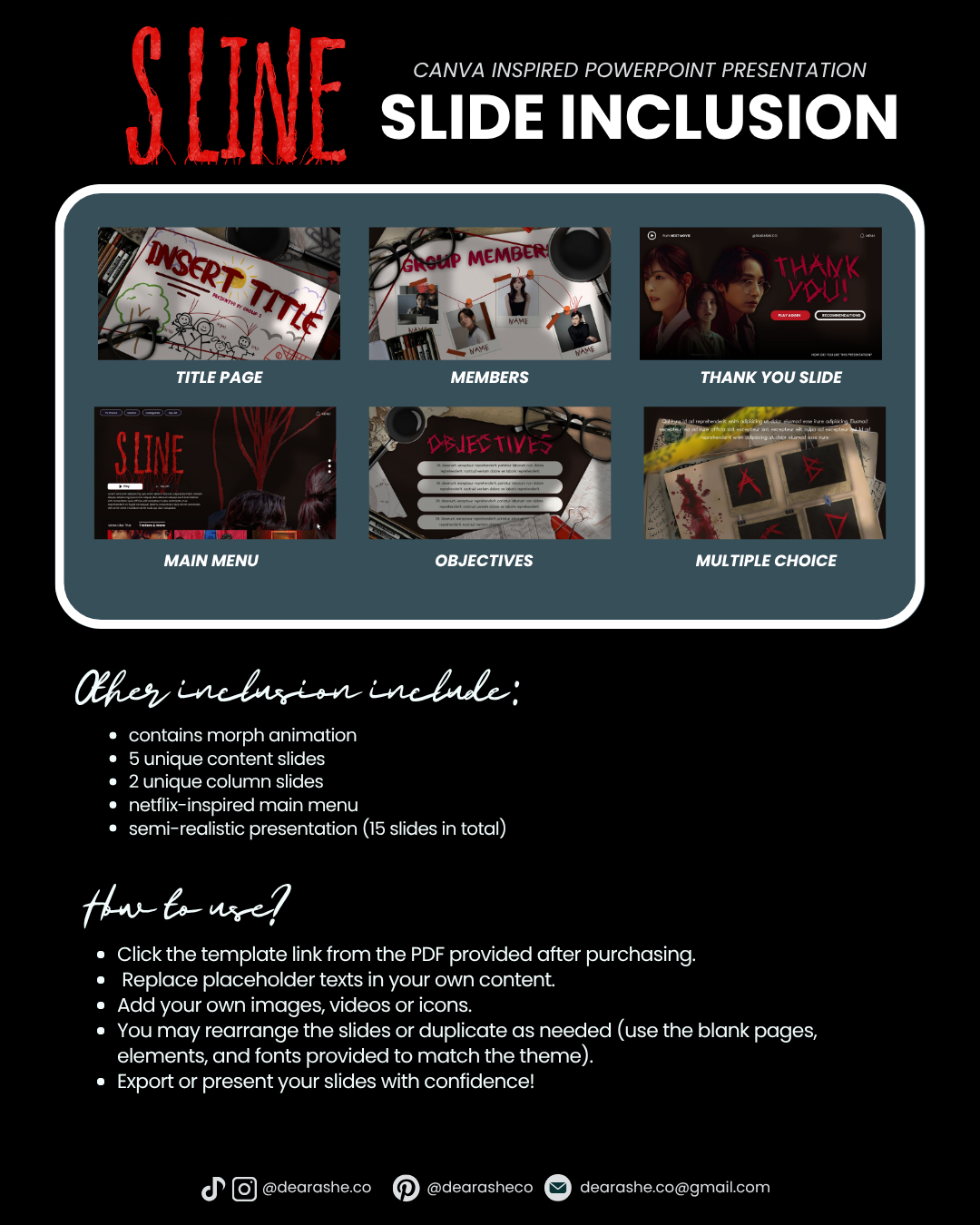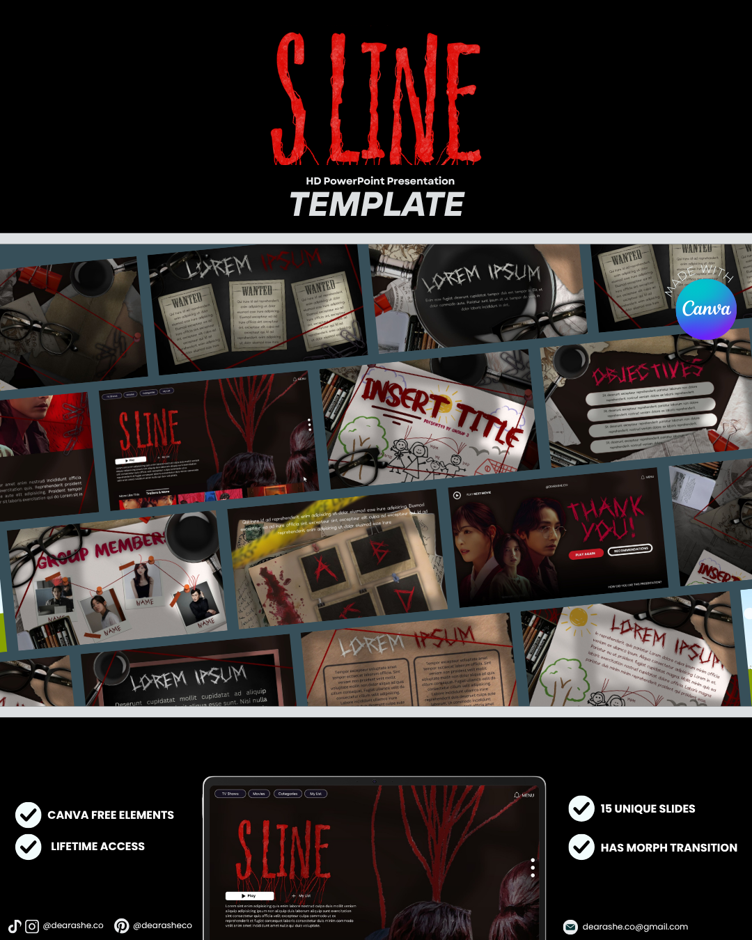 Unveil the hidden threads of your story with this SLINE Inspired PowerPoint Template. This template channels the mystery, sensuality, and tension of the series through visuals and interactives layouts. Let your presentation reveal more than what's seen. Connect the lines, show the unseen.