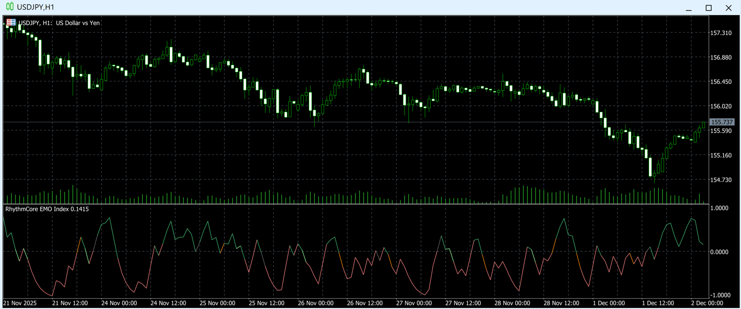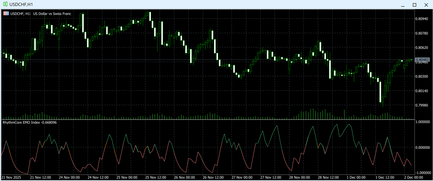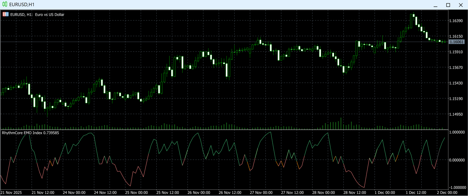 The RhythmCore EMO Engine is a next-generation MT5 indicator that measures market emotion in real time—revealing shifts in fear, greed, tension, exhaustion, and trend strength long before they appear in price action.