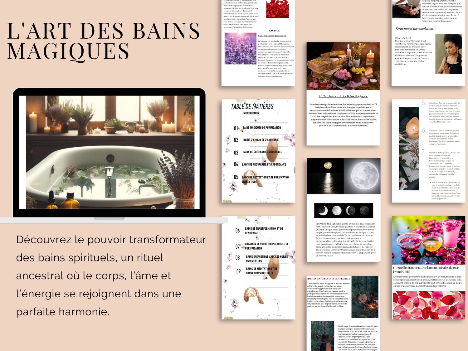 Que vous soyez débutant ou déjà initié aux arts spirituels, “L’Art des Bains Magiques” est bien plus qu’un simple guide : c’est un voyage intérieur vers la paix, la guérison et la redécouverte de votre pouvoir personnel.