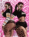 ╰┈➤ Acc: leg garter, arm warmers, head bandana, puppy ears, glasses, mouth cord with hearts, leg warmers, pasties, purse.