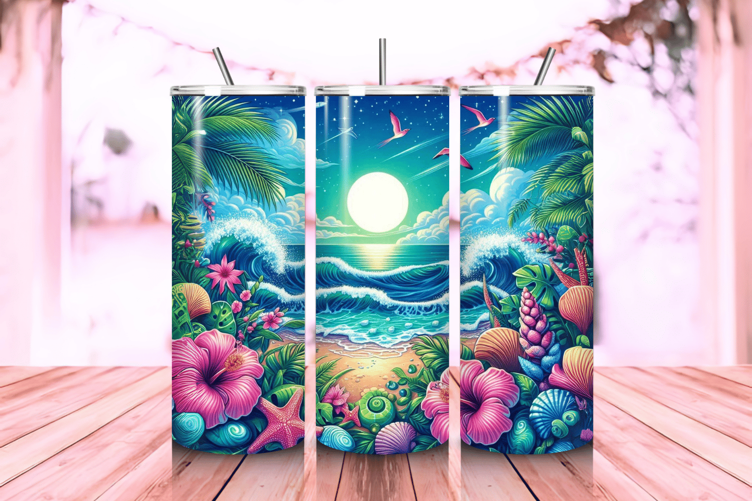Bring paradise to your drinkware with this Tropical Beach Vibes Tumbler Wrap, made to fit 20oz skinny tumblers perfectly. Featuring swaying palm trees, radiant sunset hues, and an exotic coastal charm, this design captures the carefree spirit of tropical evenings. Perfect for summer gifts, beach-inspired collections, or brightening your sublimation projects, it’s a wrap that blends relaxation with vibrant island style.