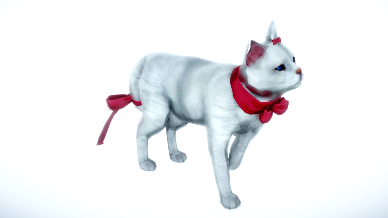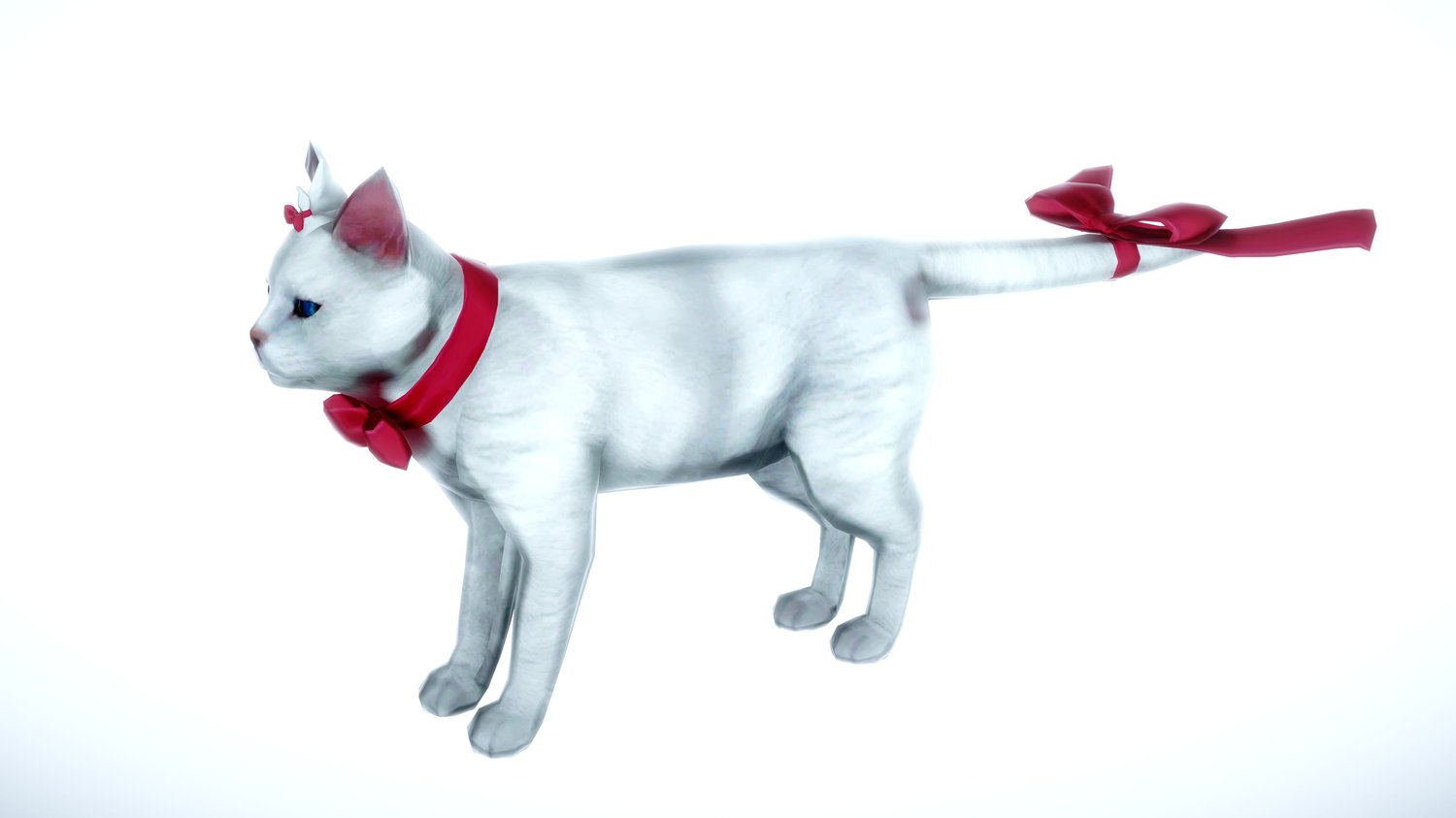 With its virtually soft fur and expressive eyes that seem to convey emotion, this virtual kitty is a presence that promises to bring joy to any scene. But it's its collar that truly sets it apart, a red Christmas bow that adds a festive glow to its appearance.