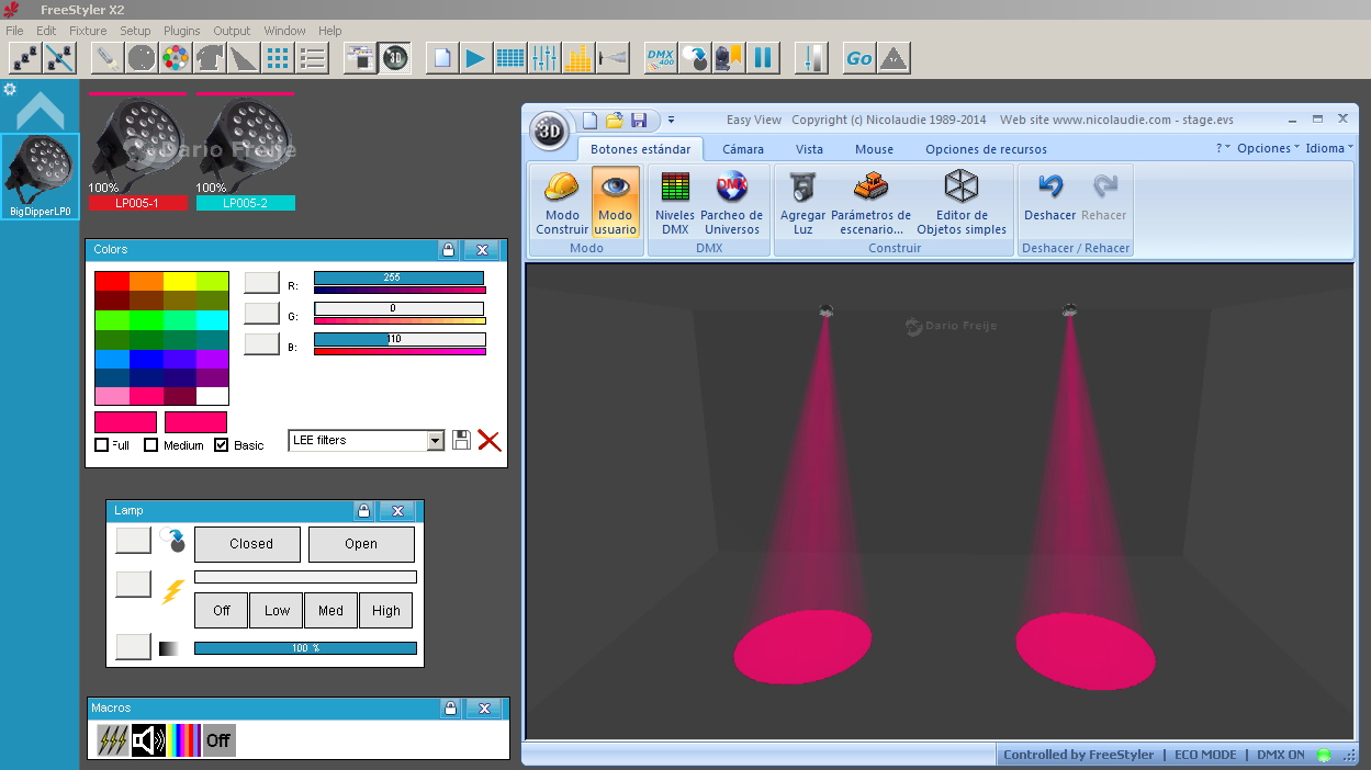 Esta Librería SSL2 está optimizada para trabajar con Magic 3d Easy View. Es decir para ver una representación 3D de las secuencias que estemos realizando con Freestyler, QLC+ o cualquier otro soft que se conecte con Magic 3d.