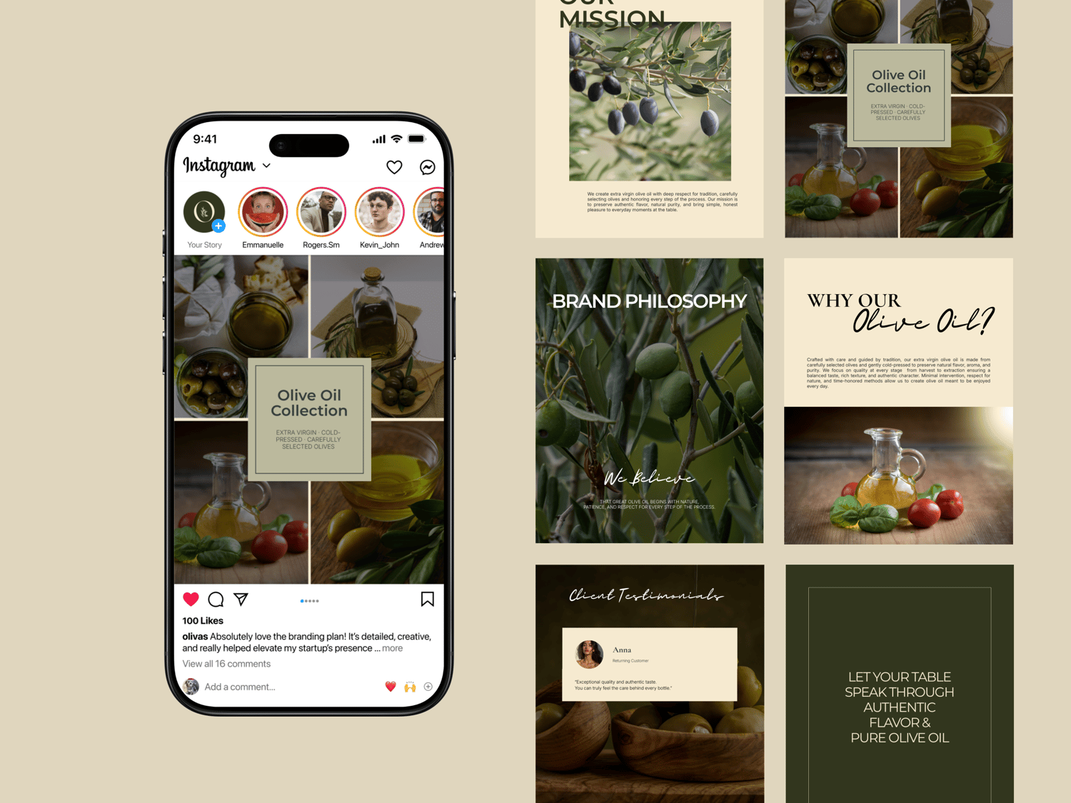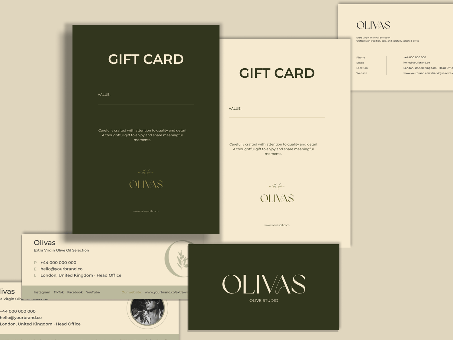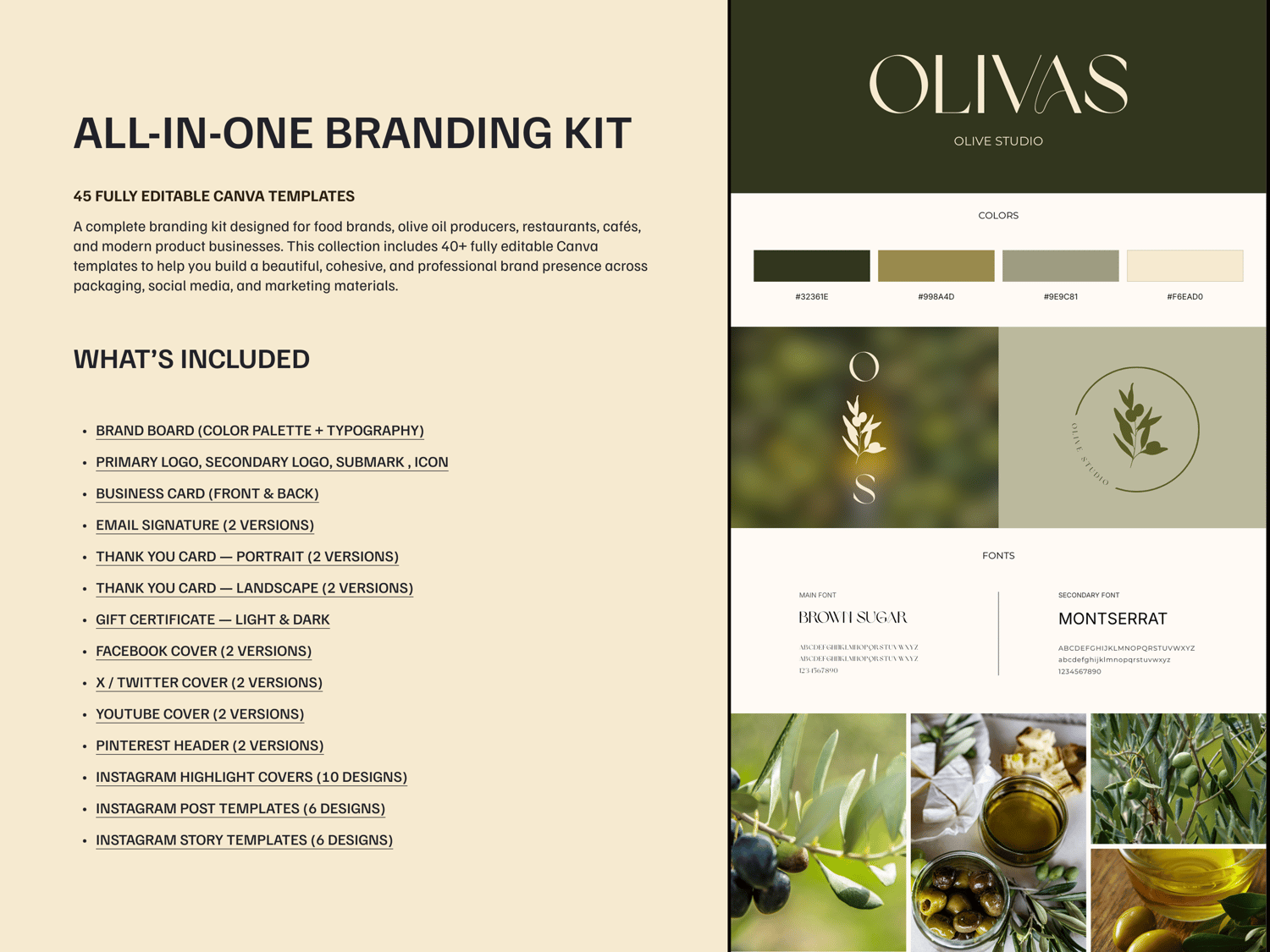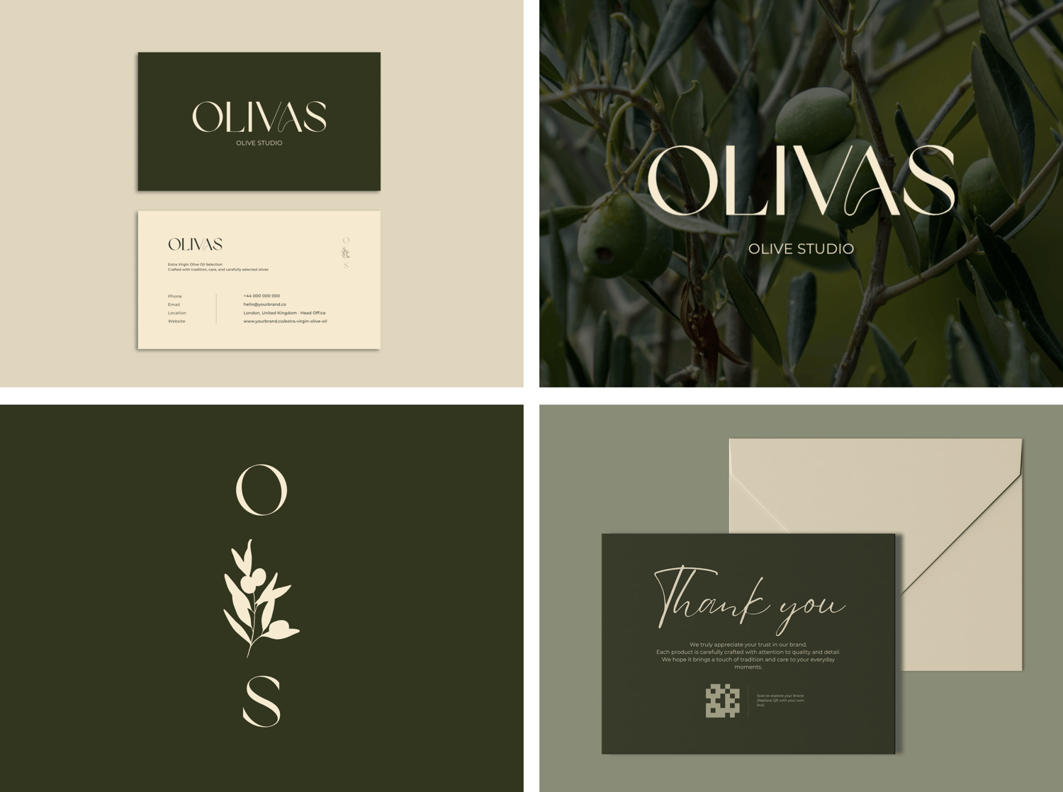 Perfect for olive oil brands, food businesses, cafés, restaurants, and modern organic brands who want a clean, elegant, and professional look.