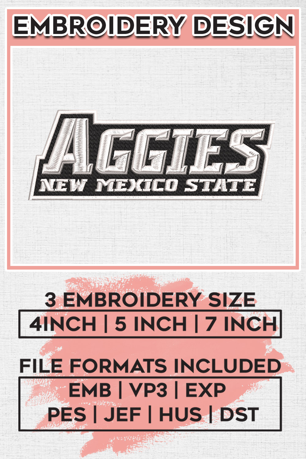 Ncaa Aggies Wordmark Logo Embroidery Design Files, NCAA New Mexico State Aggies Machine Embroidery Designs, NCAA Logo Machine embroidery designs, Ncaa NMSU Aggies Logo, Digital Download